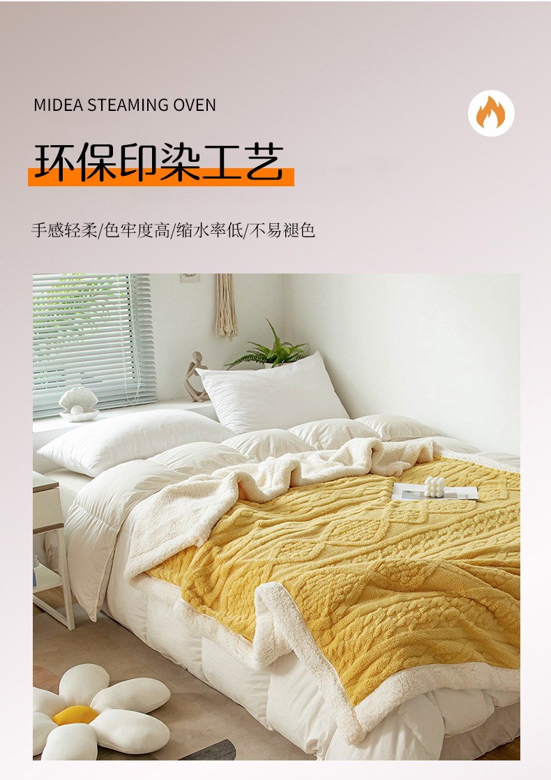网客家纺 2024新款塔芙绒提花羊羔绒盖毯 柠檬黄