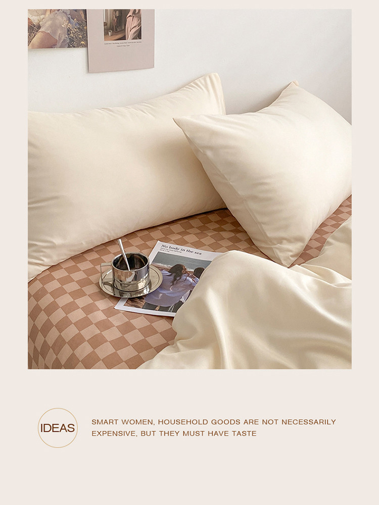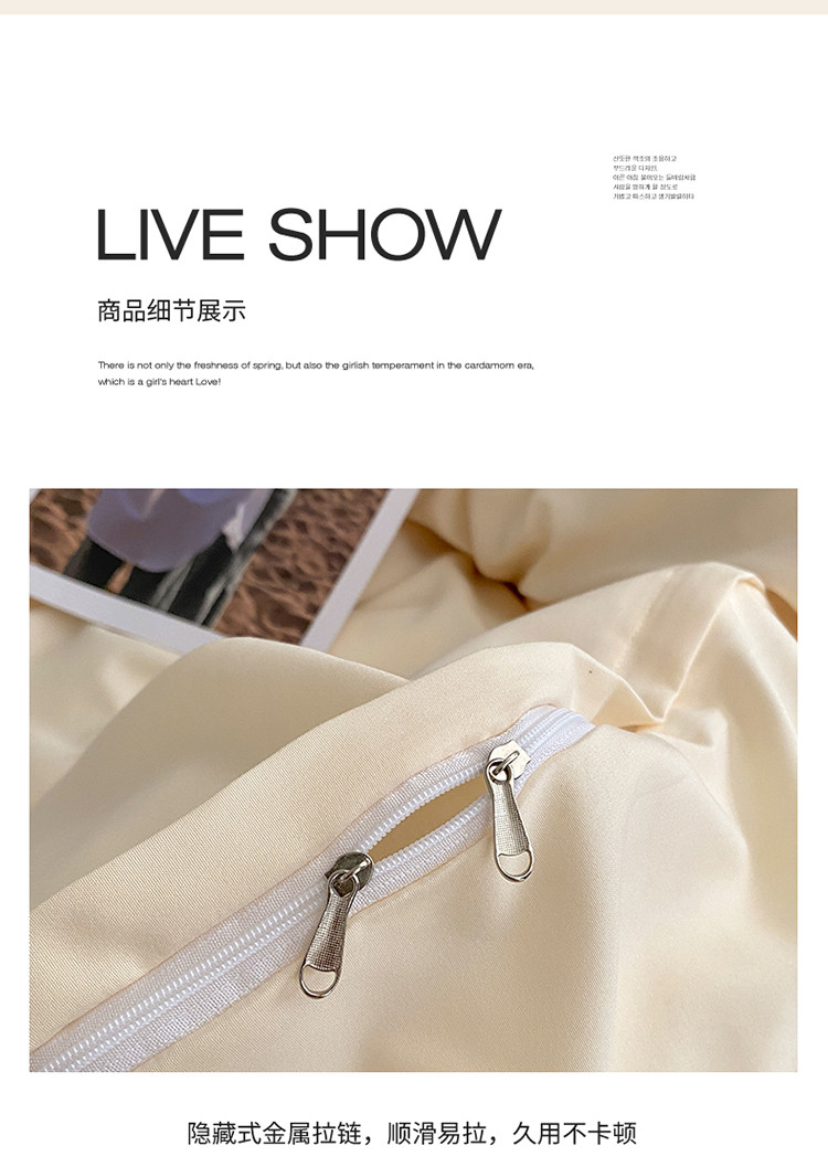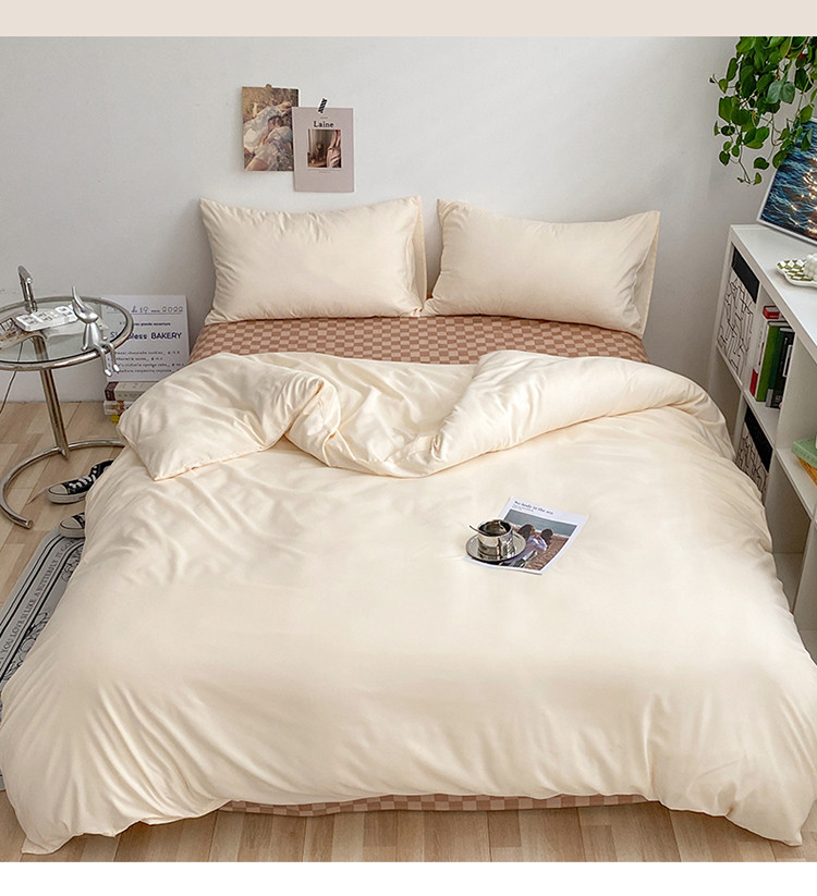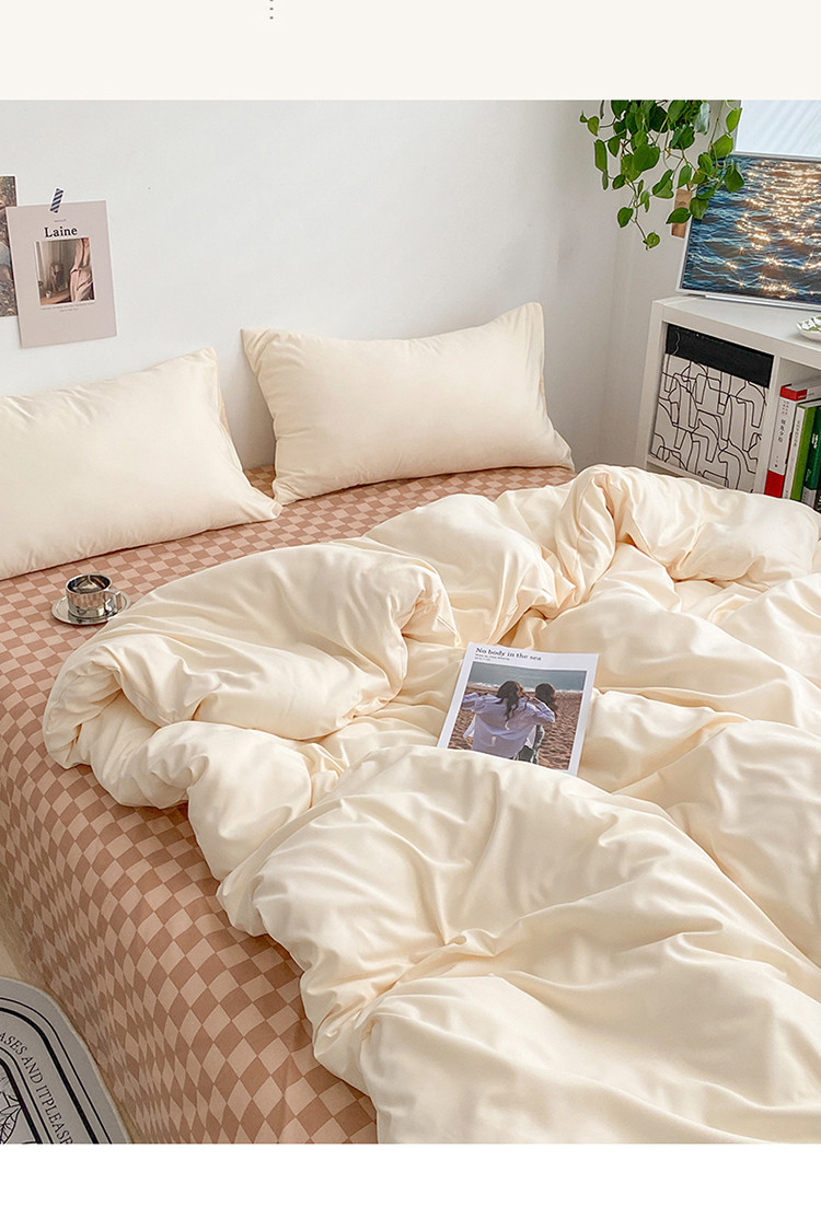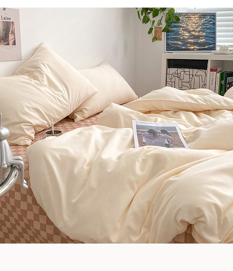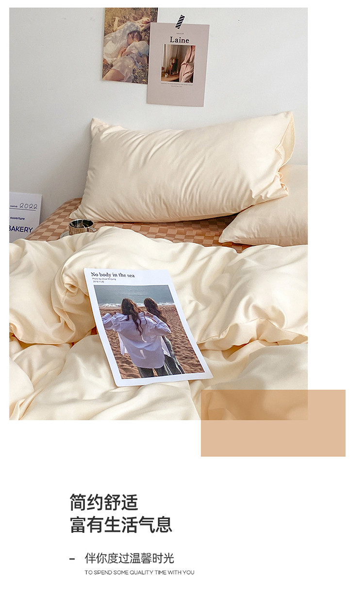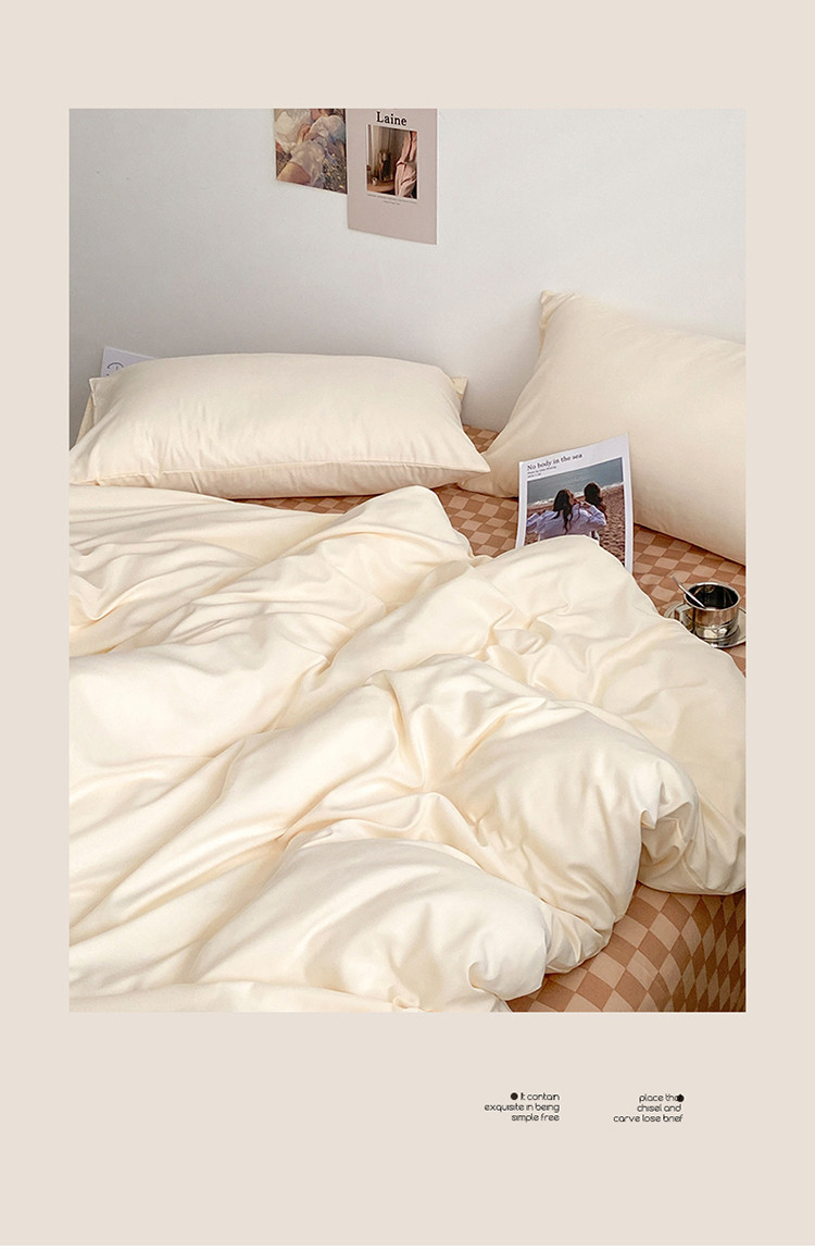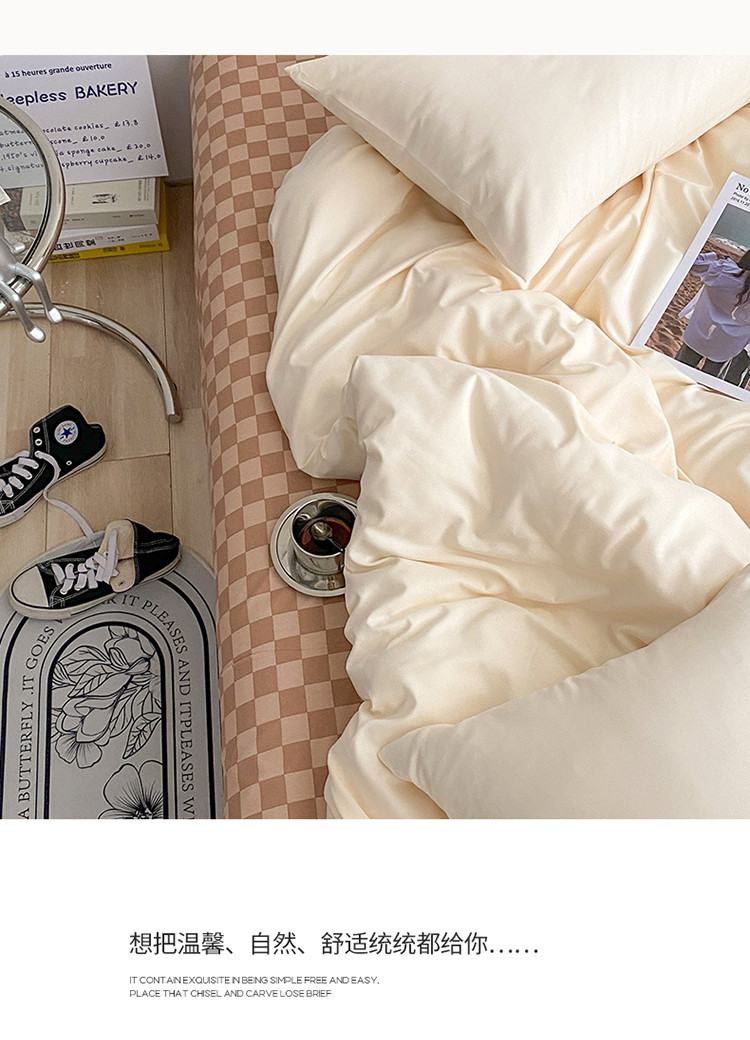眠帛 2022新款水洗棉混搭四件套 奶昔白