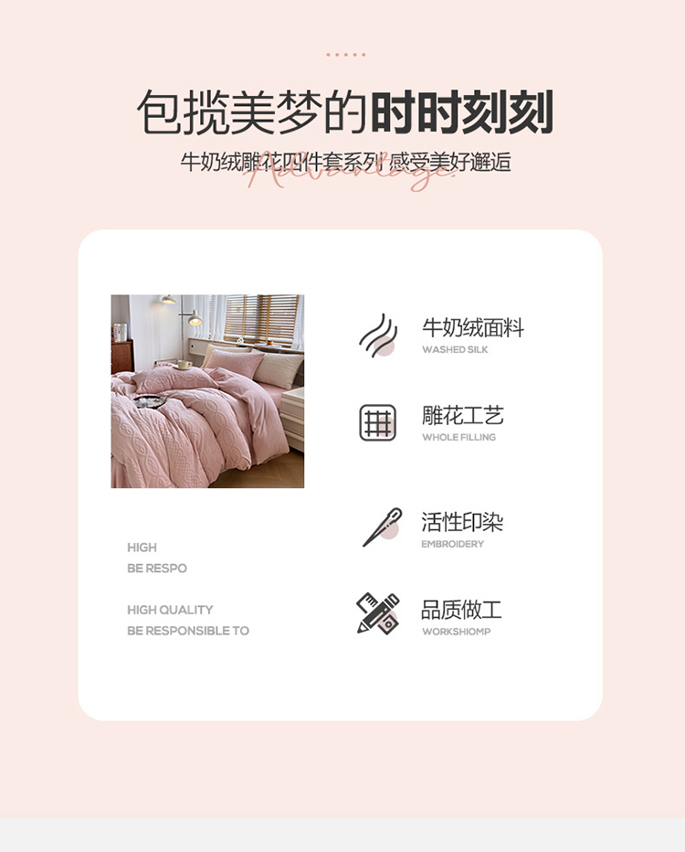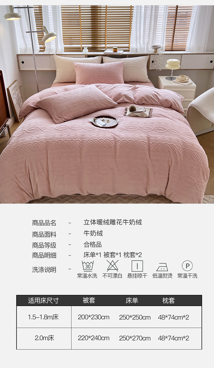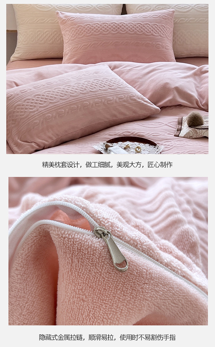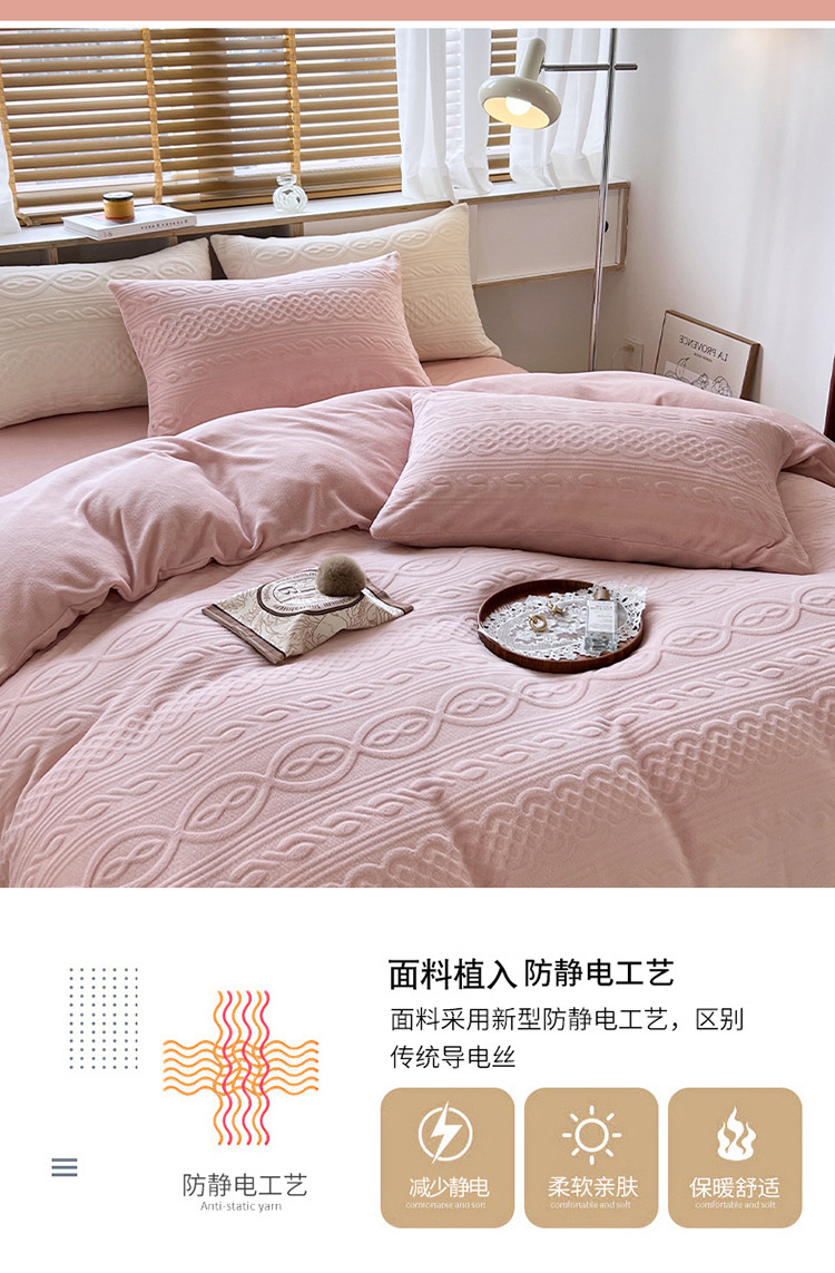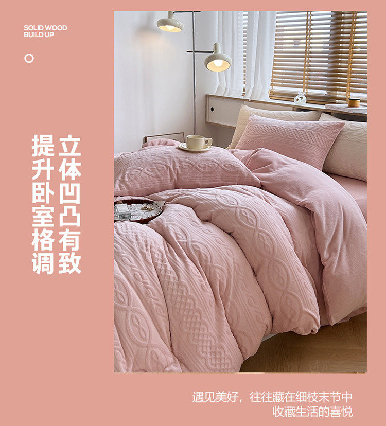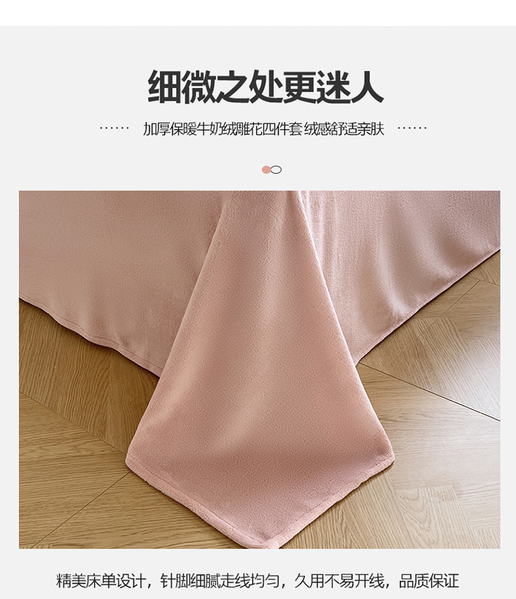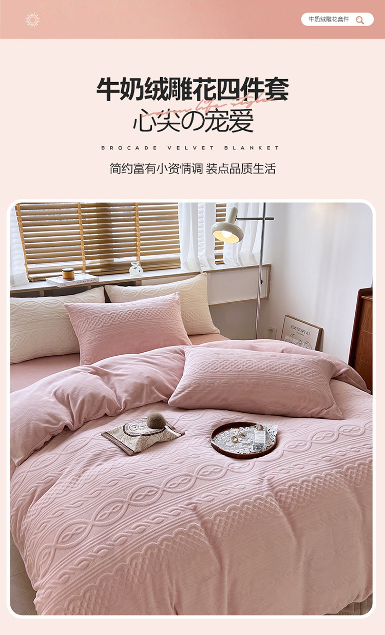 商品名称:N先生2022新款高克重雕花绒牛奶绒四件套 丽莎-粉