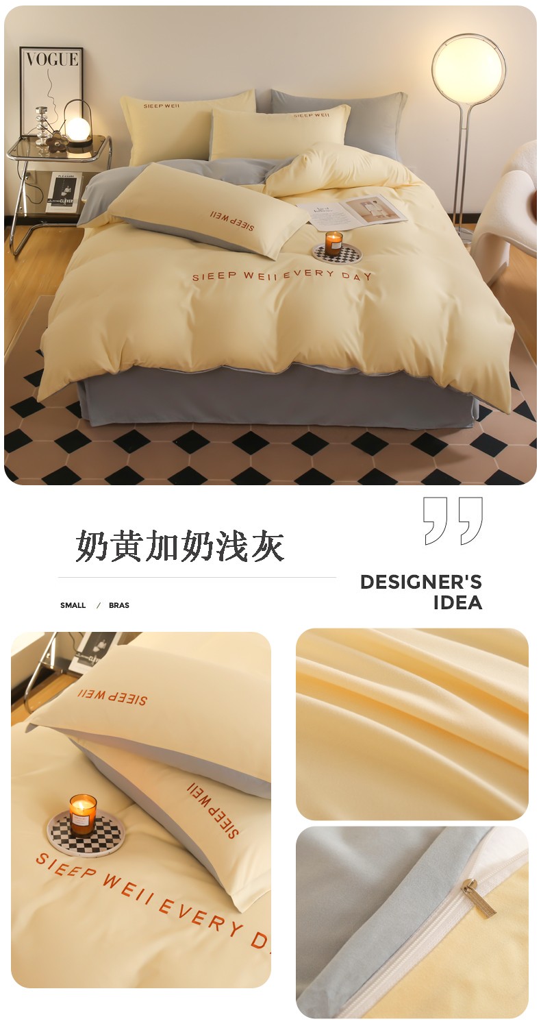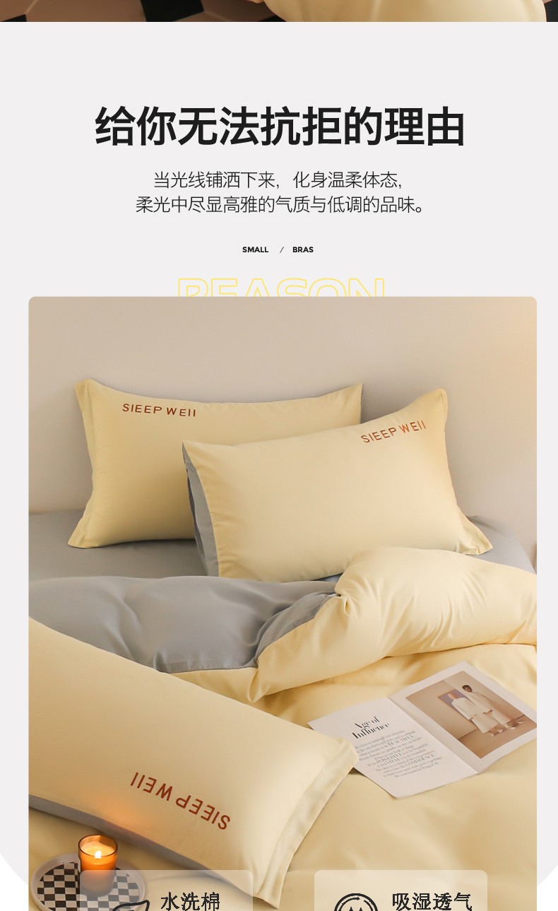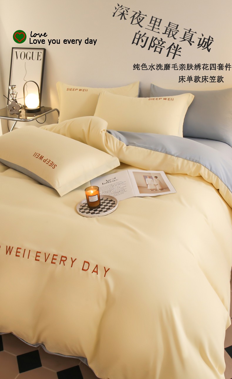 当前位置: 91家纺网 > 商品网购 > 床品套件 > 四件套 > 普通磨毛四件套 > 啊雅家居纯色水洗磨毛亲肤绣花床单款床笠款四套件 奶黄加奶浅灰