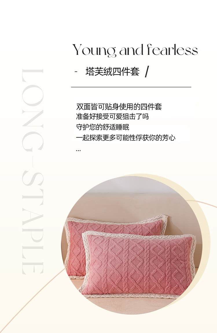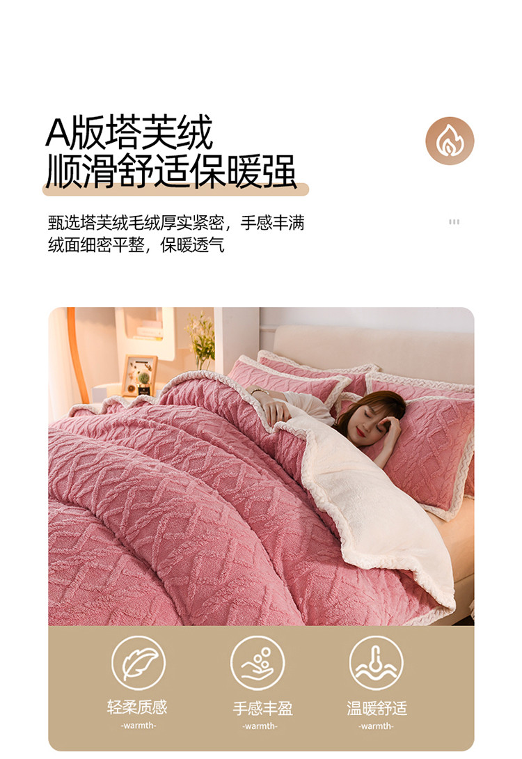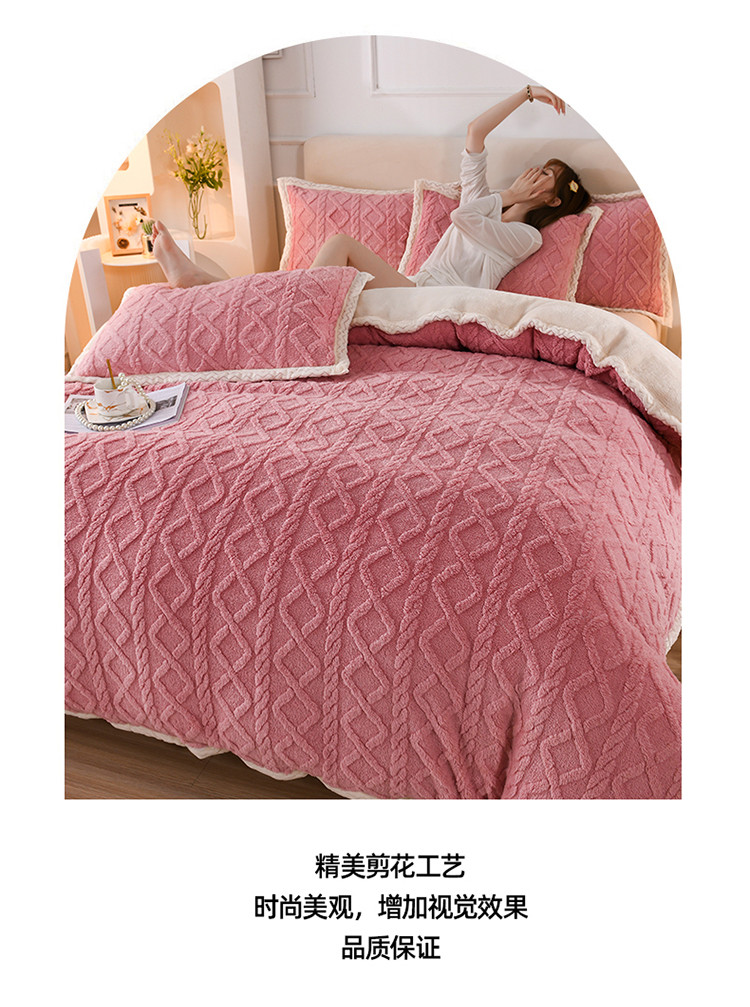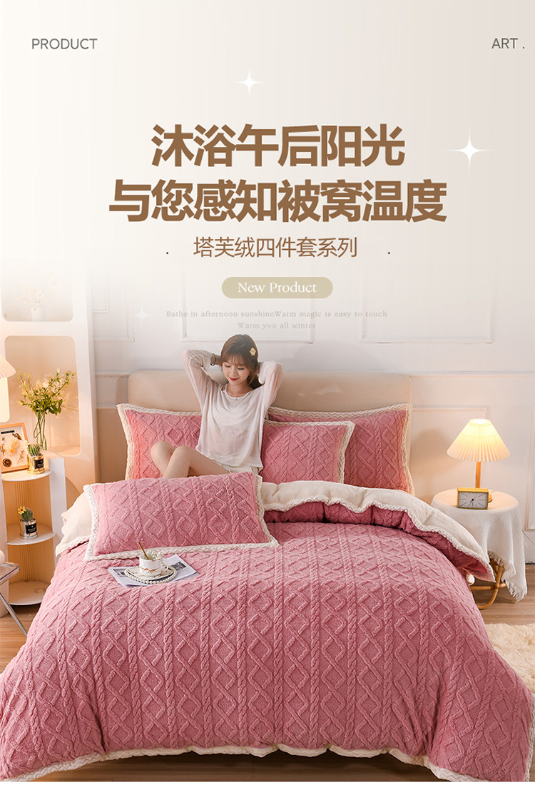 当前位置: 91家纺网 > 商品网购 > 床品套件 > 四件套 > 贝贝绒四件套 > 迷仙巢 2022新款塔夫绒拼北极绒贝贝绒包边四件套 樱花粉