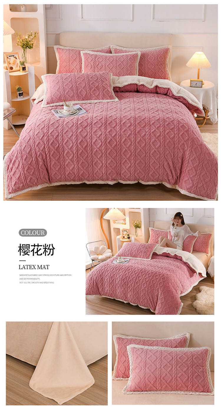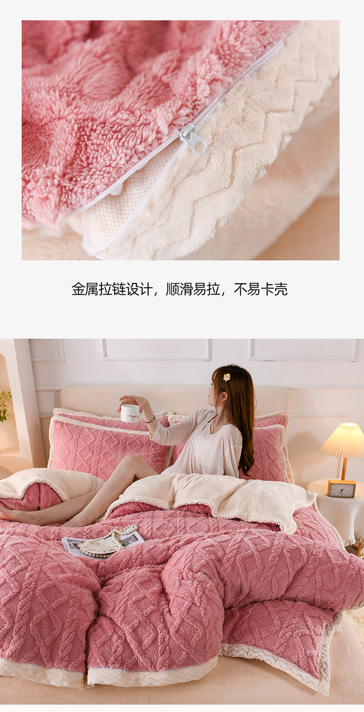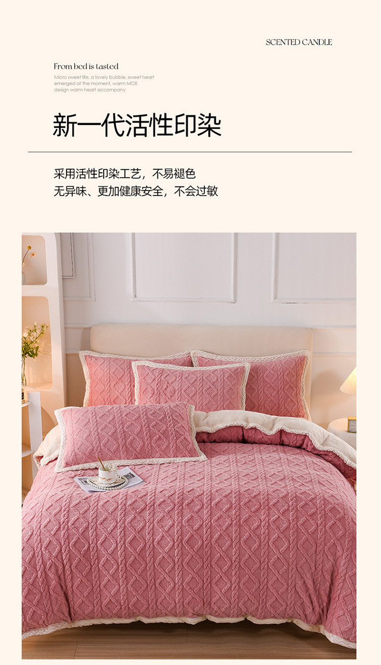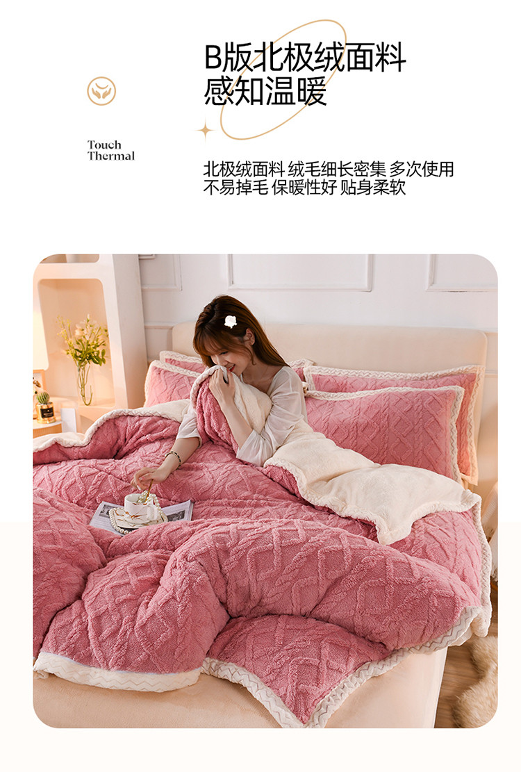 当前位置: 91家纺网 > 商品网购 > 床品套件 > 四件套 > 贝贝绒四件套 > 迷仙巢 2022新款塔夫绒拼北极绒贝贝绒包边四件套 樱花粉