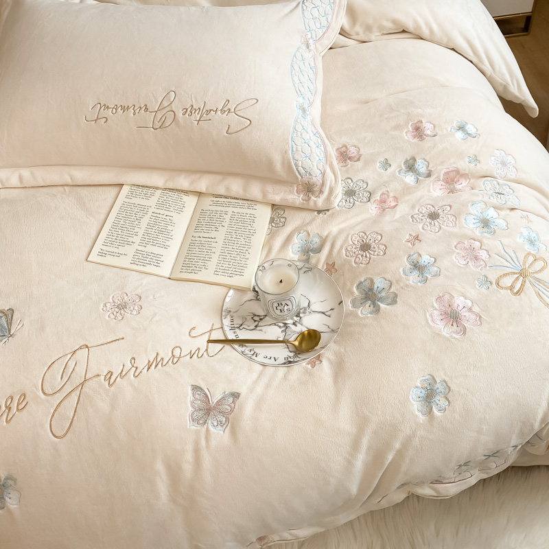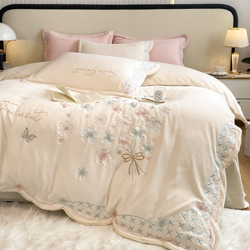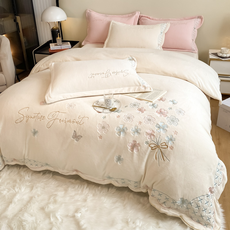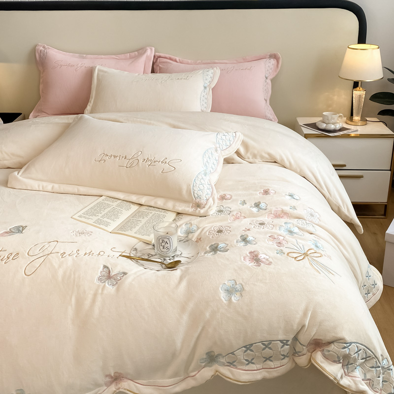 商品名称:红嘴企鹅 2025新款蝶之恋牛奶绒四件套 白色