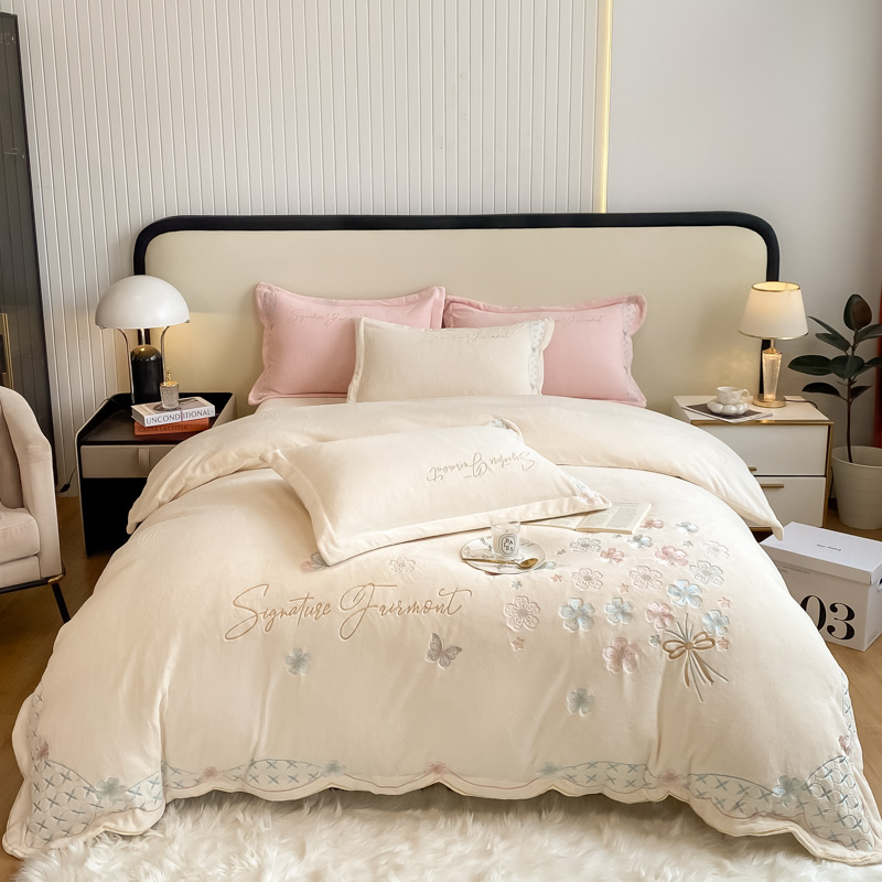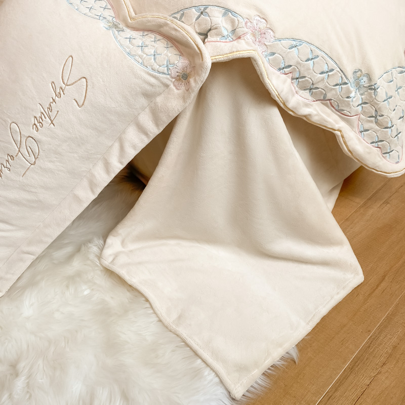 红嘴企鹅 2025新款蝶之恋牛奶绒四件套 白色