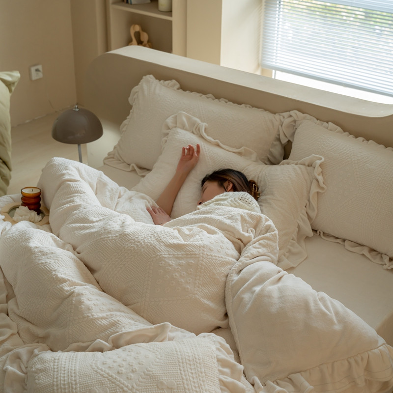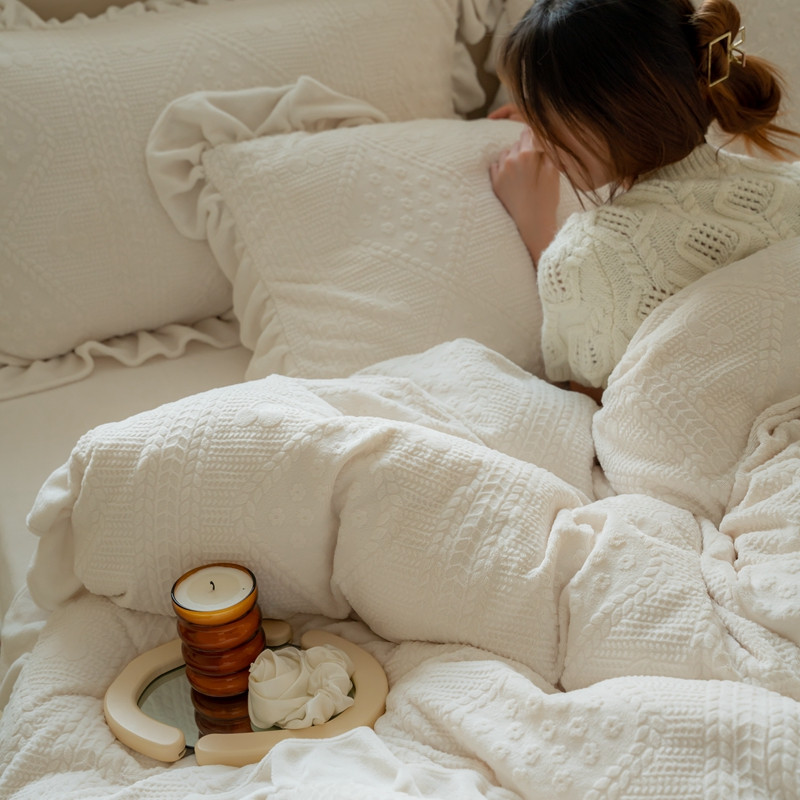馨蕊 2022新款秋冬轻奢雕花绒煦暖绒四件套-温妮 温妮-元气白桃