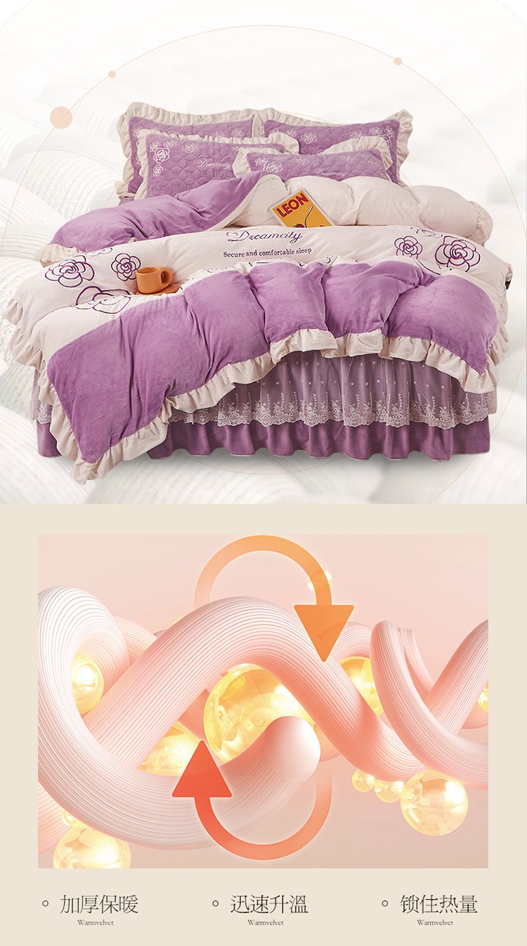 (总)宜凡家纺 2025新款兔绒提花牛奶绒夹棉床裙四件套,爱心 少女粉,爱心 粉紫,爱心 驼色,蝶舞 大红,蝶舞 米色,蝶舞 浅紫,蝶舞 玉色,简爱 苍青,简爱 豆沙紫,简爱 玉色,樱桃 苍青,樱桃 豆沙紫,樱桃 奶油白