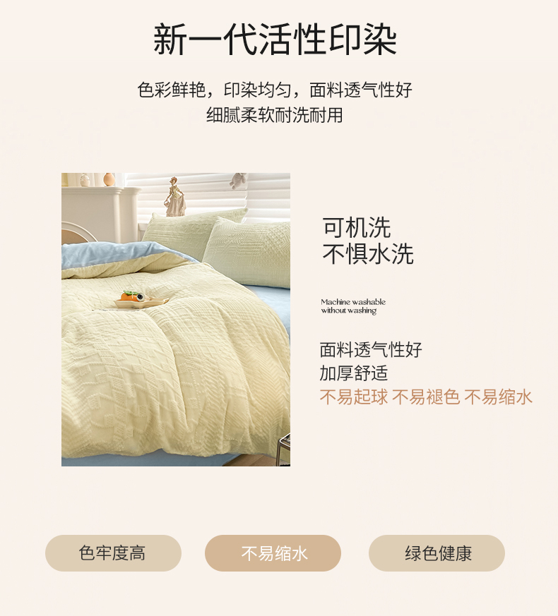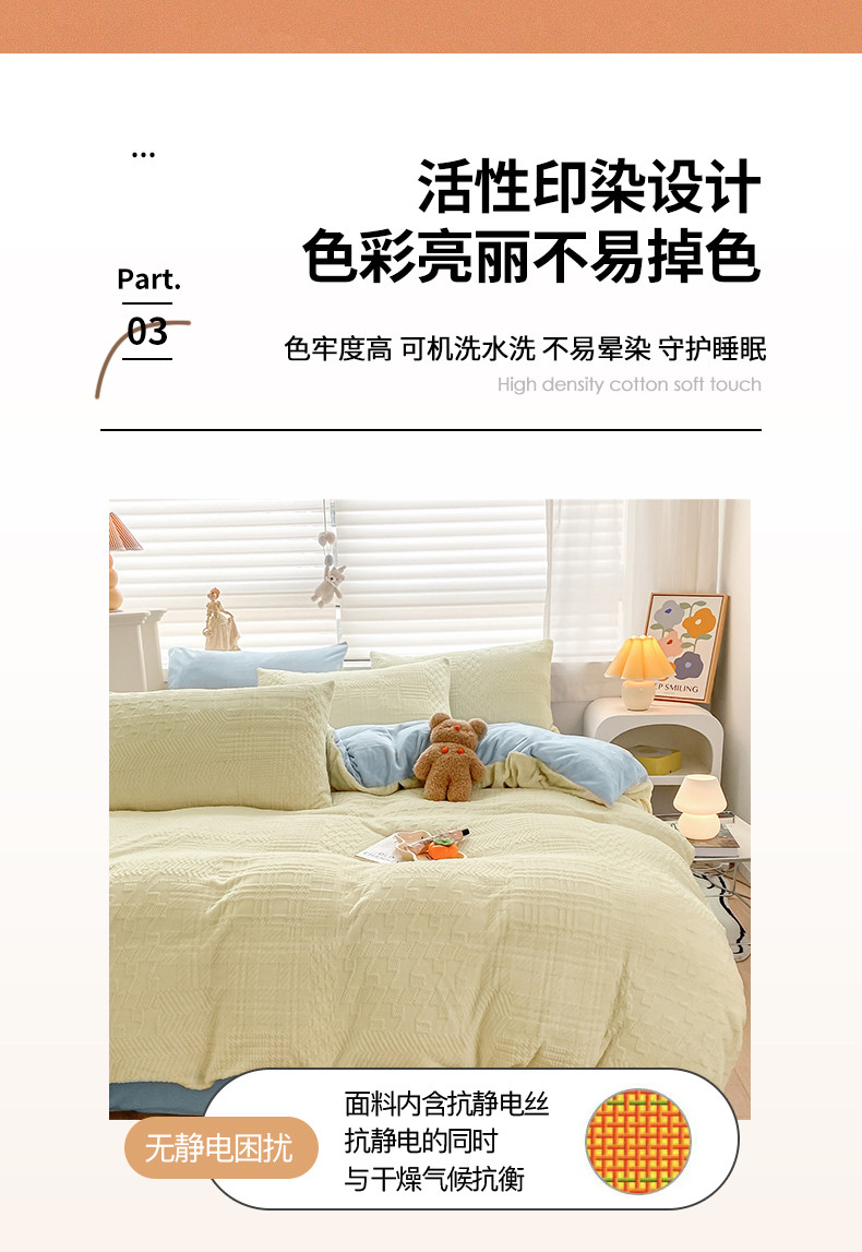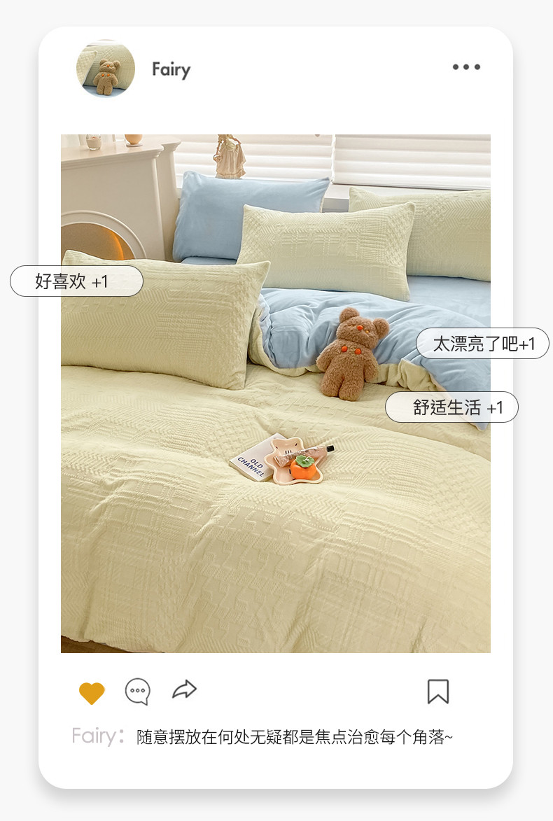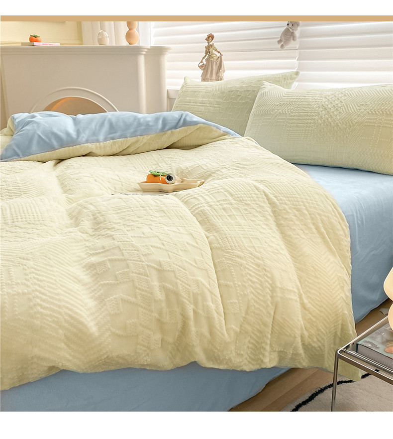当前位置: 91家纺网 > 商品网购 > 床品套件 > 四件套 > 雕花绒四件套 > 古吉梦 2022新款A类高克重华夫格雕花绒四件套 华夫格-奶黄+天空蓝