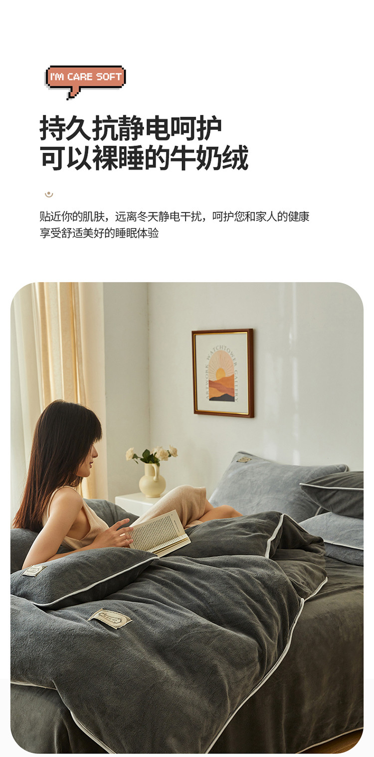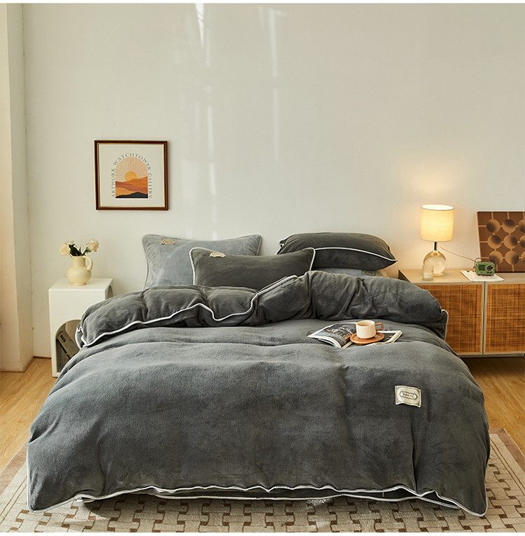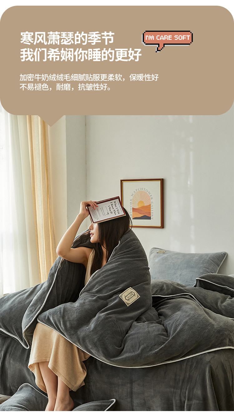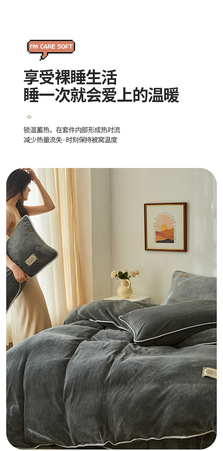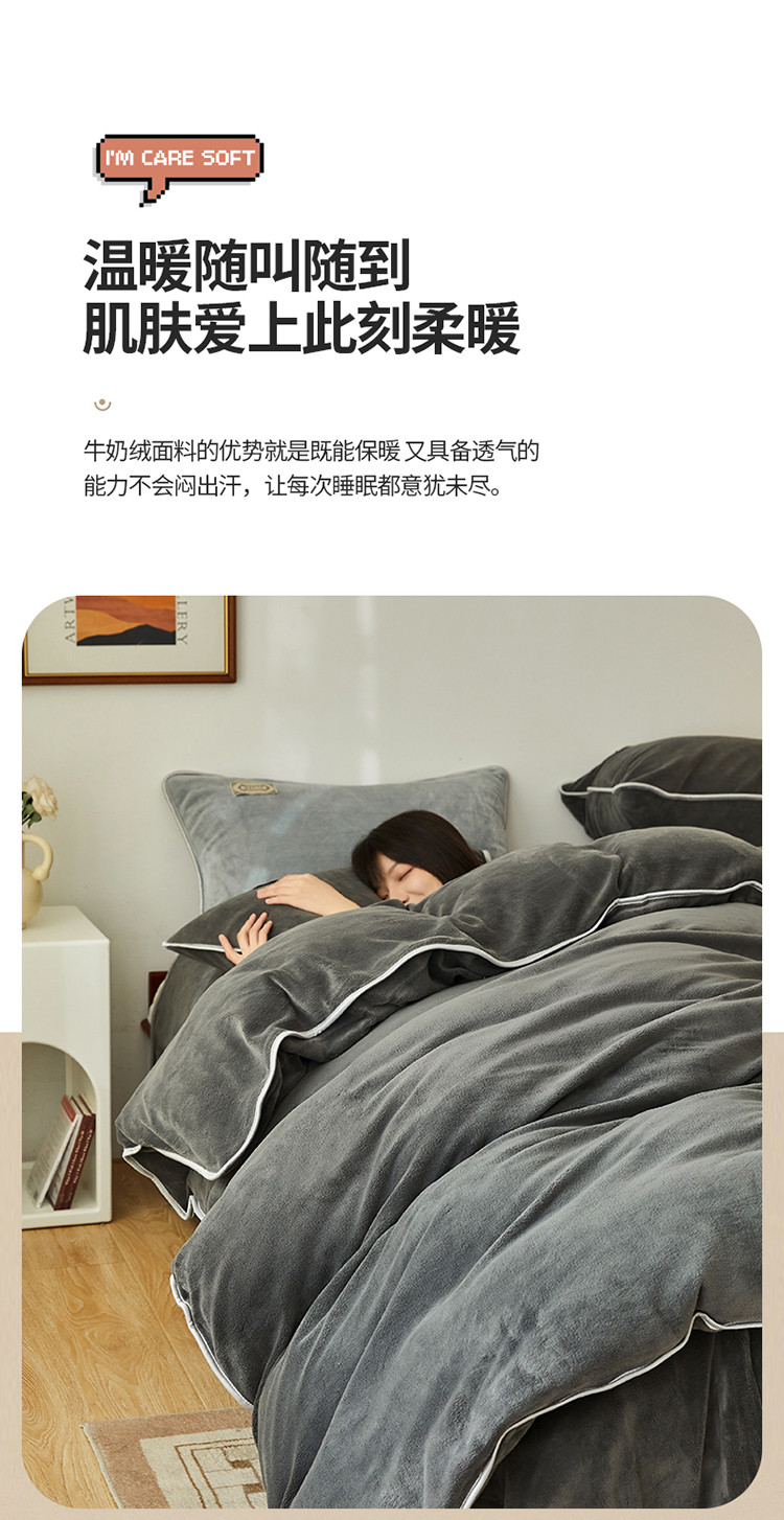 商品名称:寐眠 2022新款纯色双拼暖冬保暖牛奶绒四件套 深灰