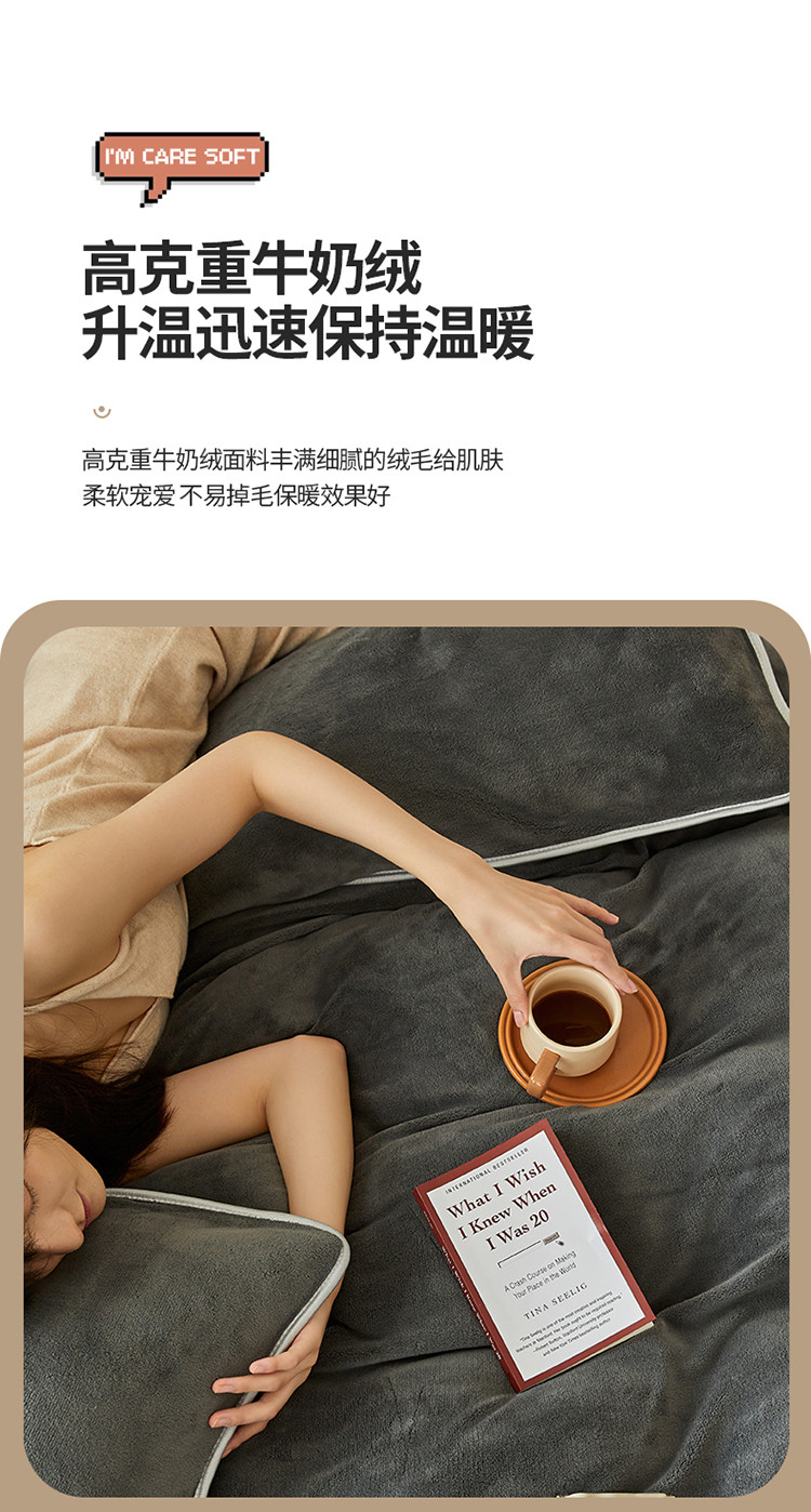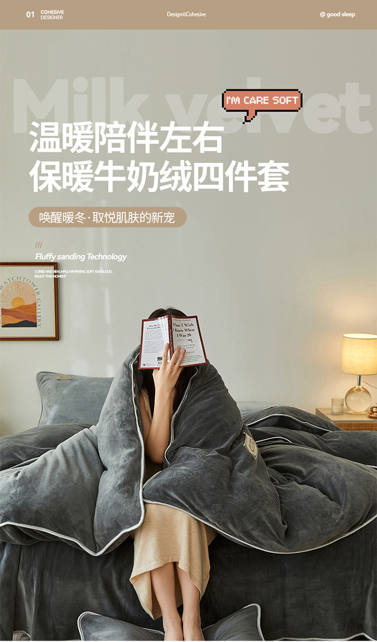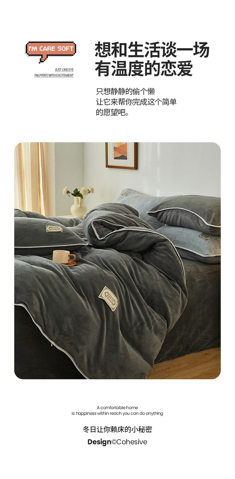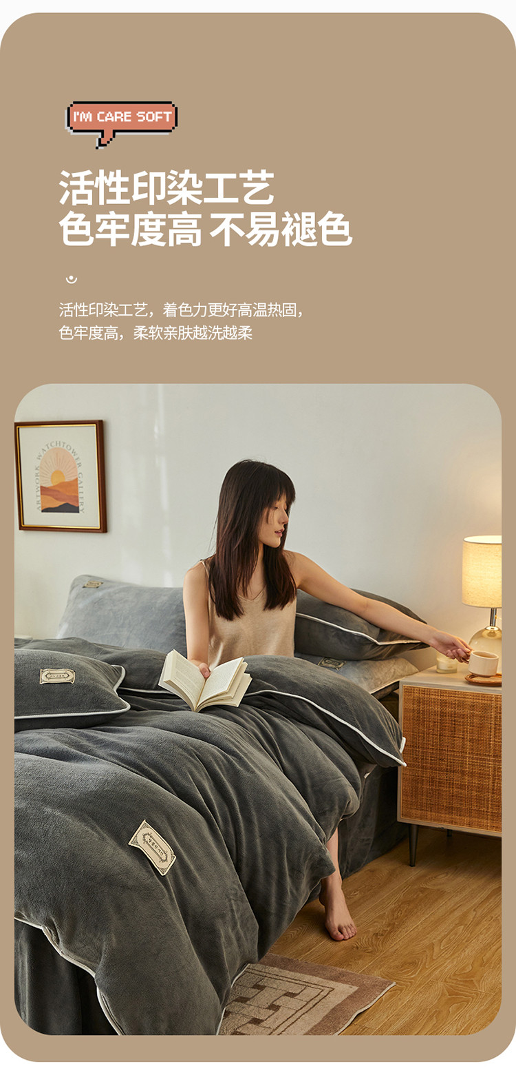 商品名称:寐眠 2022新款纯色双拼暖冬保暖牛奶绒四件套 深灰