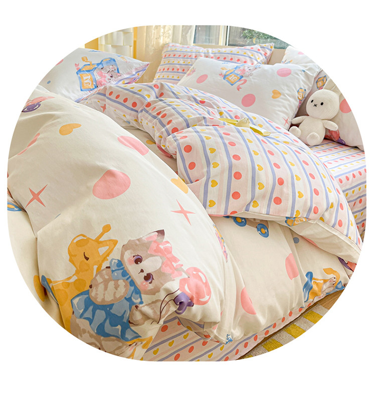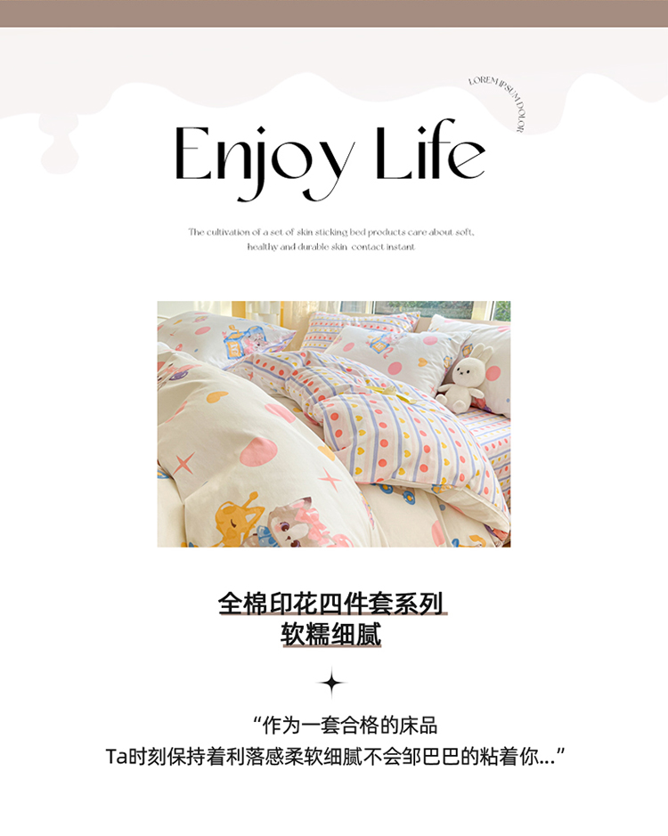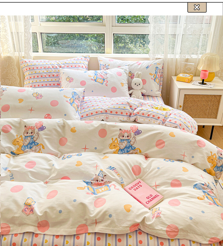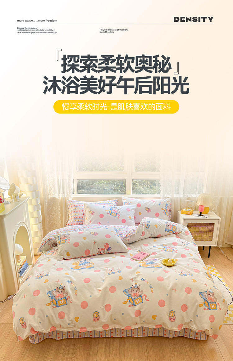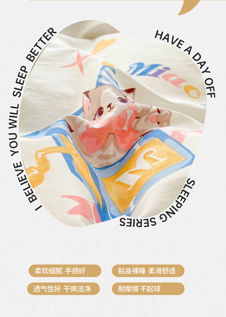 商品名称:曼之夏 (上新)2023春夏新款全棉印花四件套 奶喵噗噗