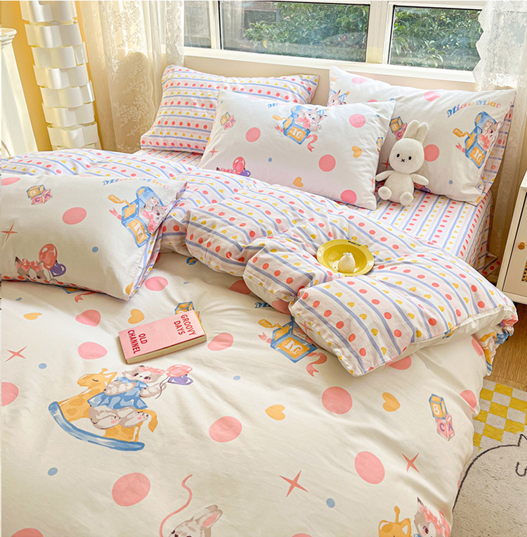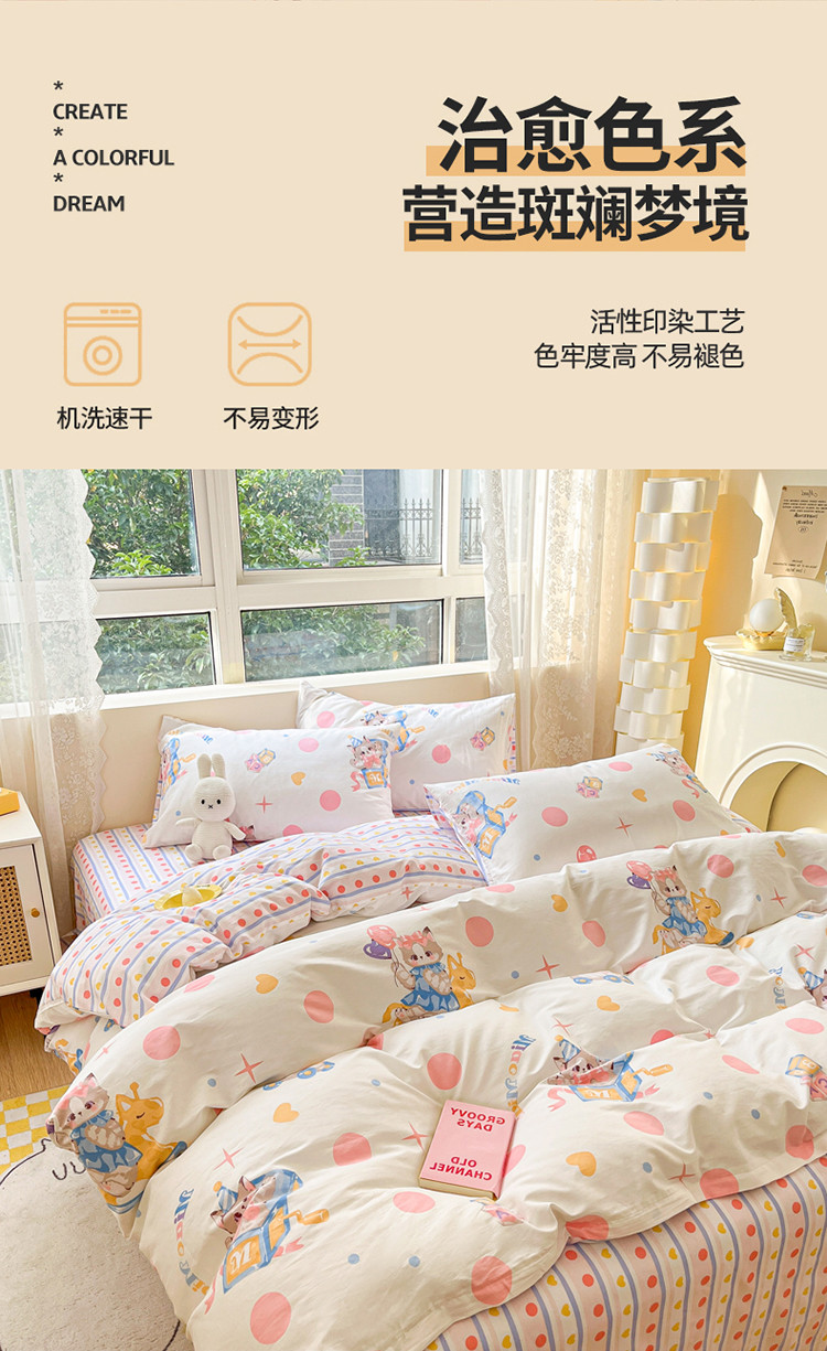 (总)曼之夏 2025新款全棉纯棉40支学生季卡通印花四件套,椰蓝小腊肠,茶茶狗,格子猫,嗨皮狗,开心屋,可爱多,可可汪,玛奇朵,奶昔小熊,泡芙小象,曲奇小狗,趣味熊,甜甜圈,甜心猫咪,童画,小狗日记,樱桃熊仔