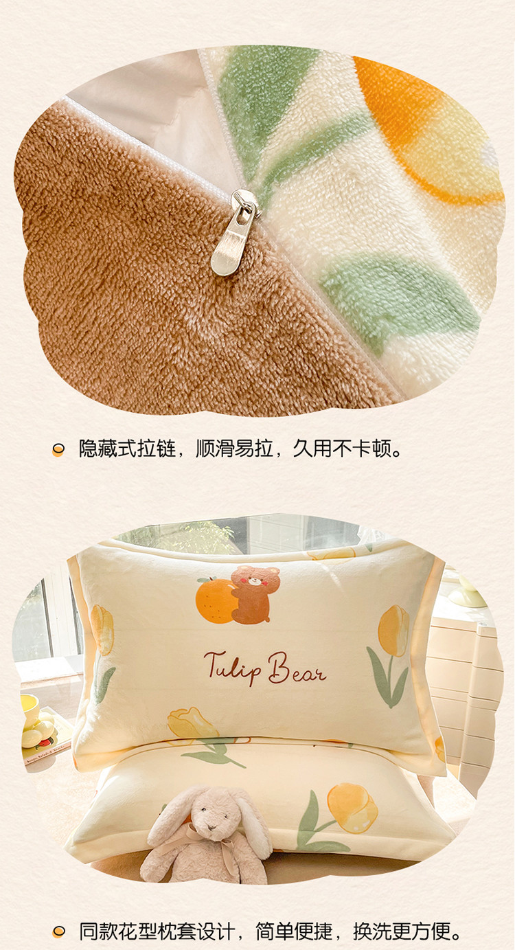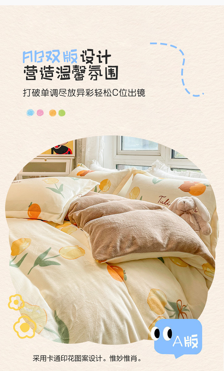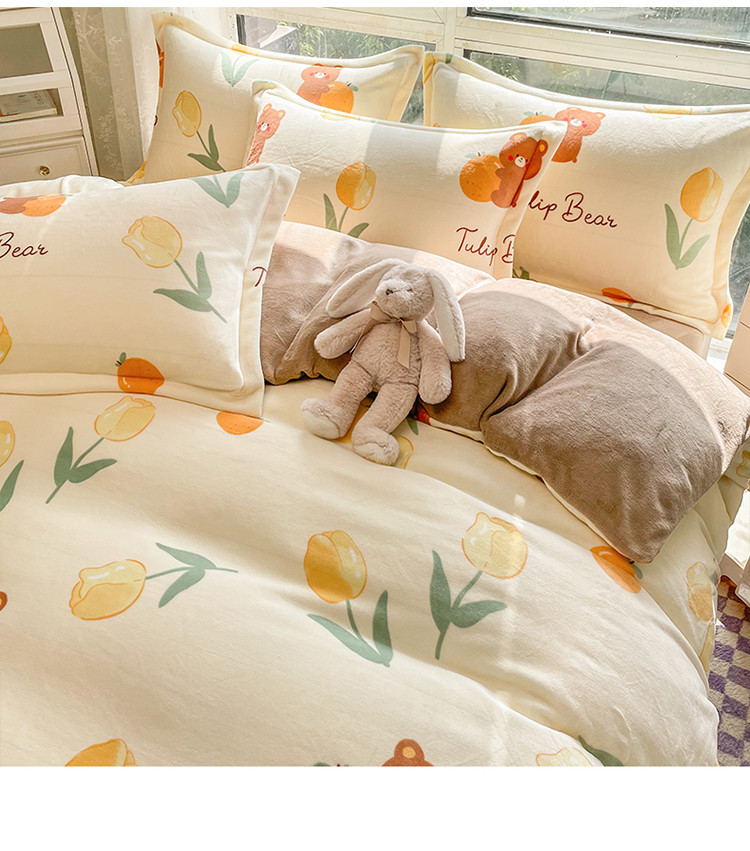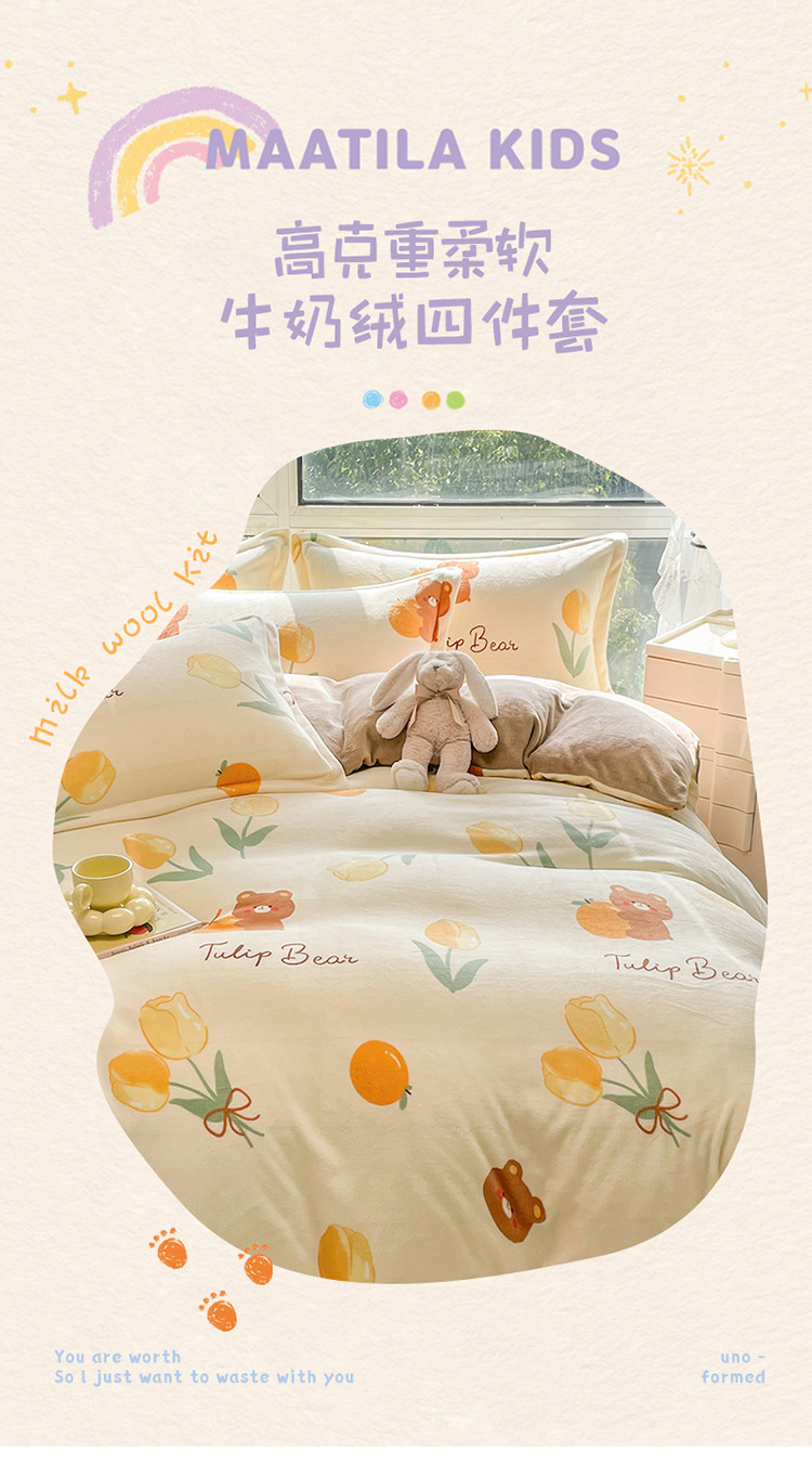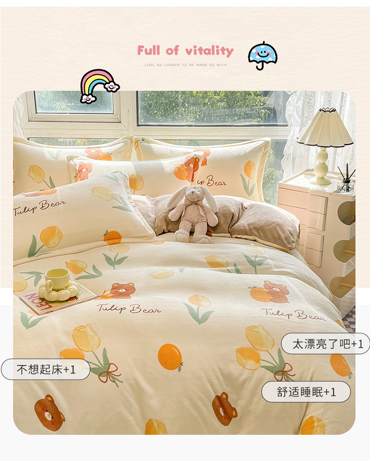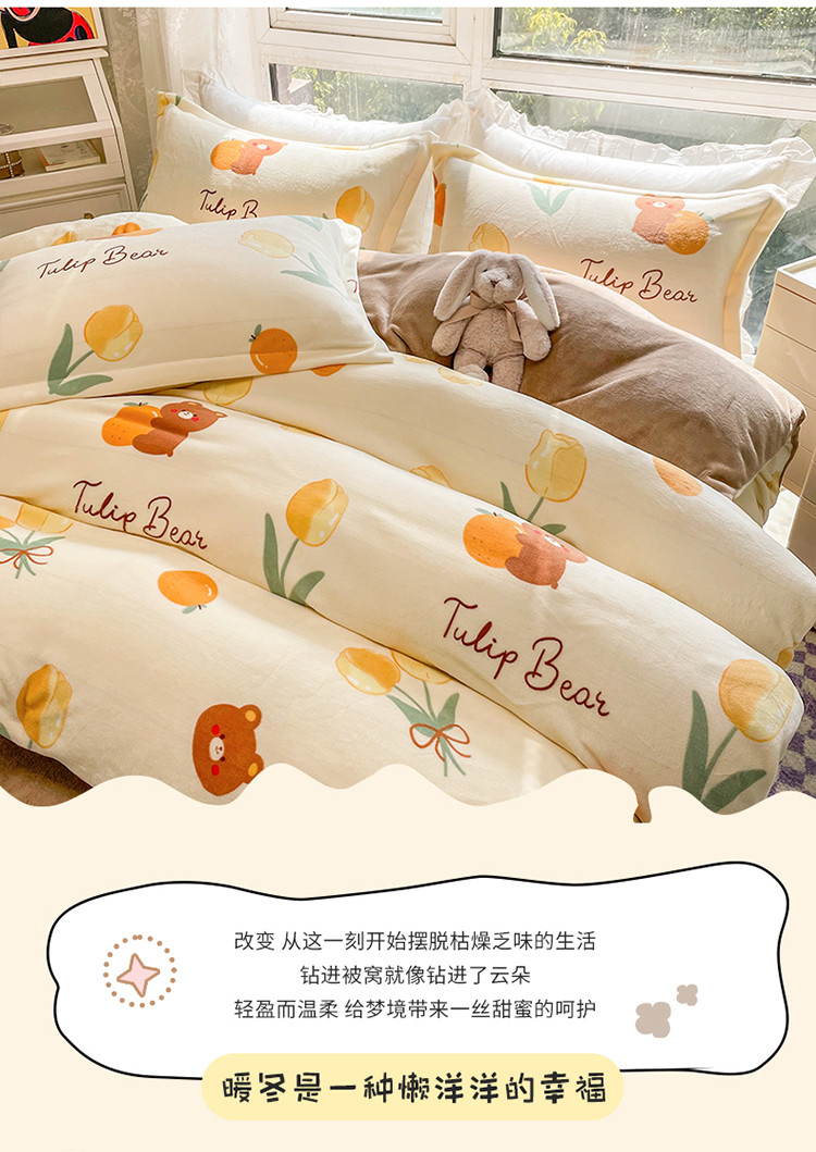 塔塔2025新款牛奶绒圆网系列四件套 郁金香小熊