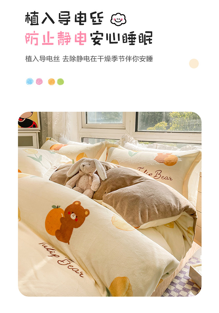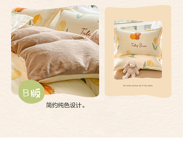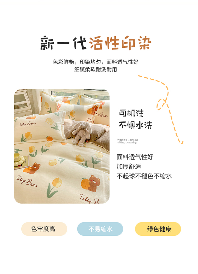 商品名称:塔塔2025新款牛奶绒圆网系列四件套 郁金香小熊