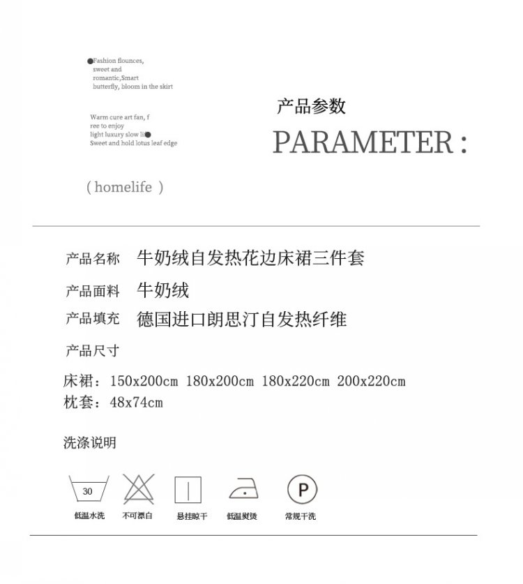 商品名称:(总)乐朵家居 2025秋冬 牛奶绒 香耐 自发热 夹棉床裙