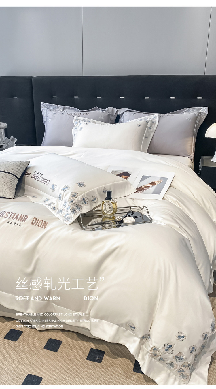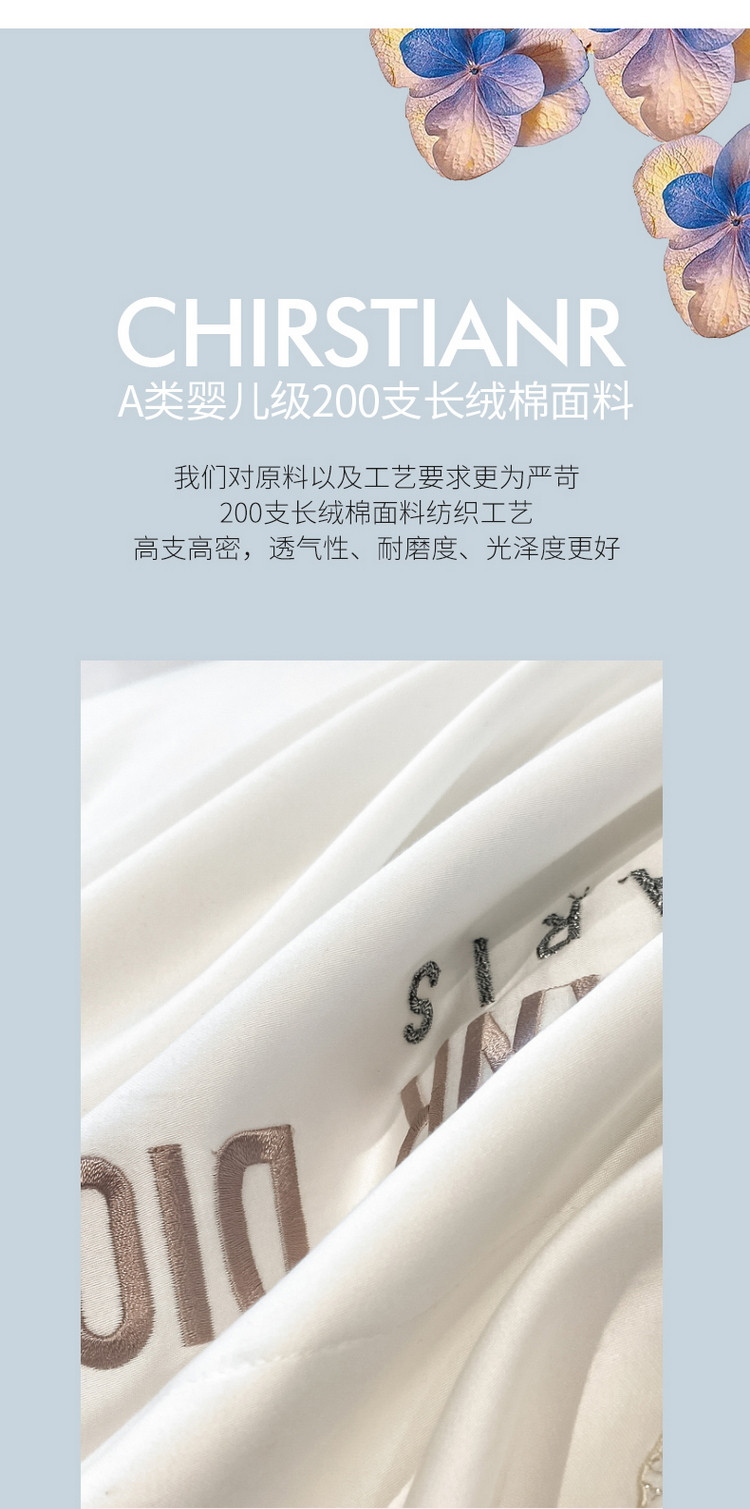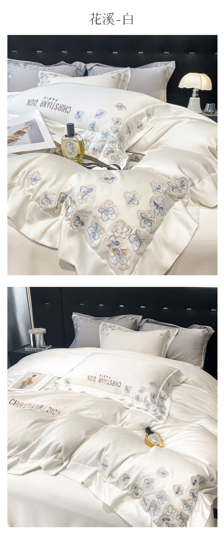 618家纺 2023新款200支长绒棉全棉纯棉四件套-花溪 花溪-白
