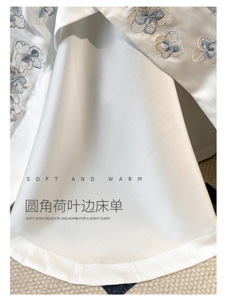 商品名称:618家纺 2023新款200支长绒棉全棉纯棉四件套-花溪 花溪-白
