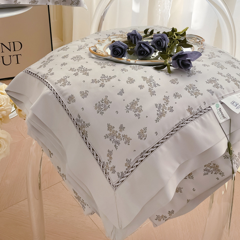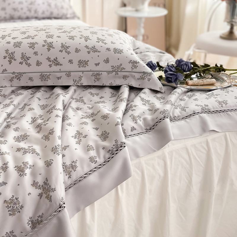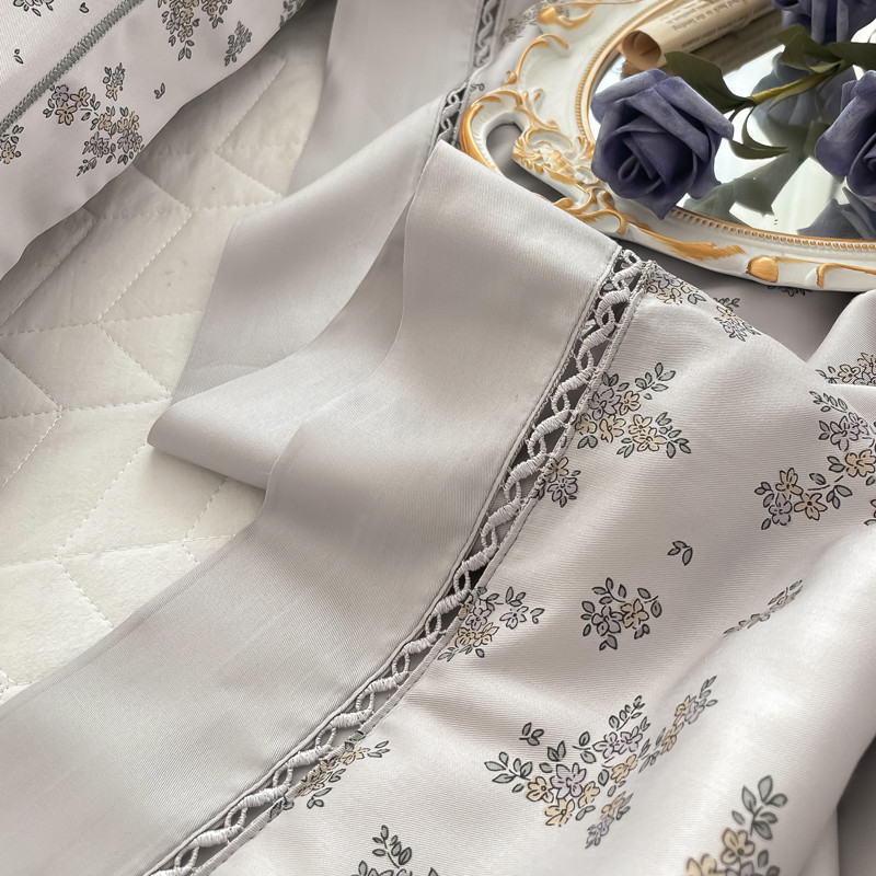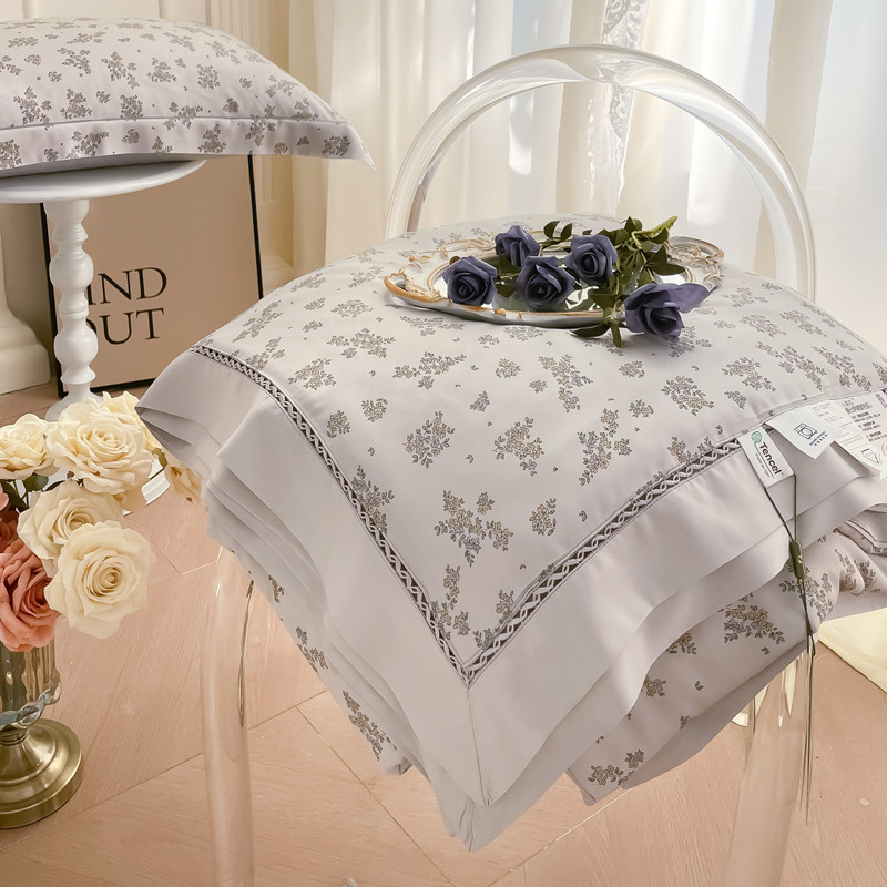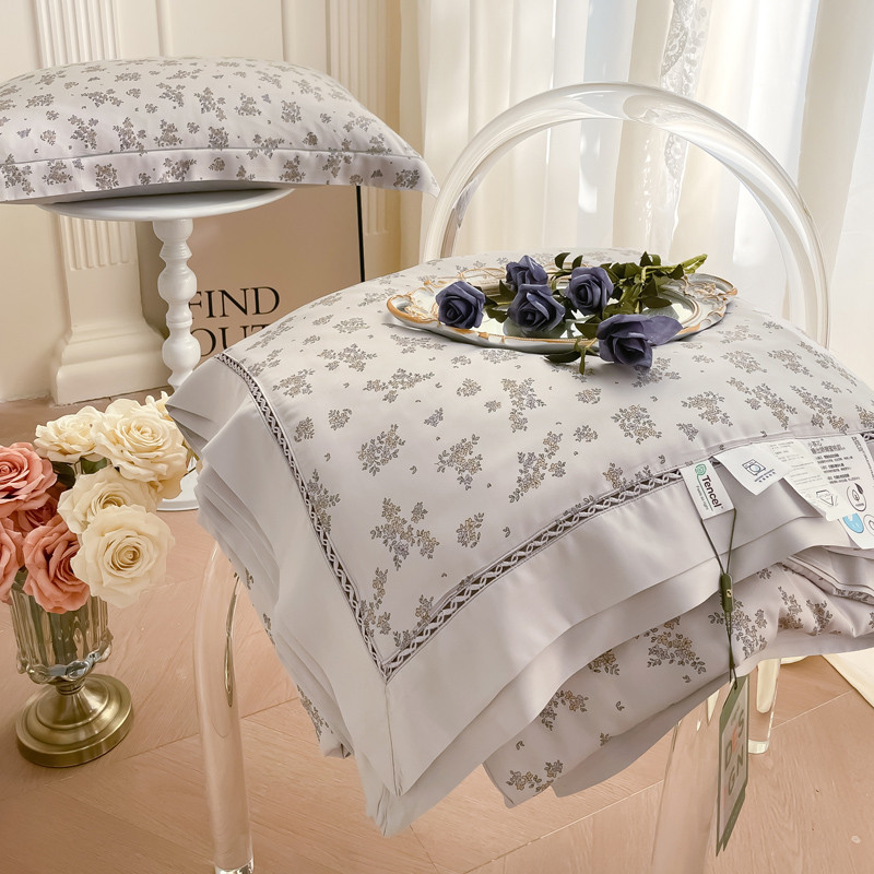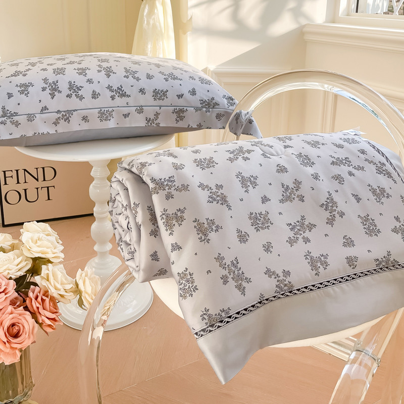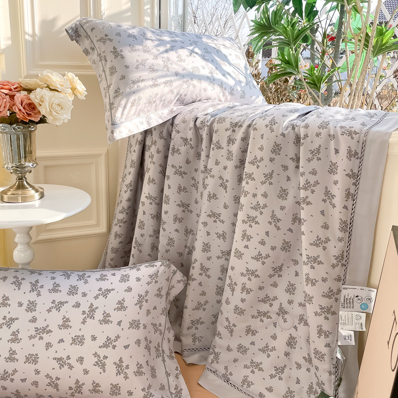 匠心 2023新款莫代尔法式镂空夏被三件套 繁花-灰