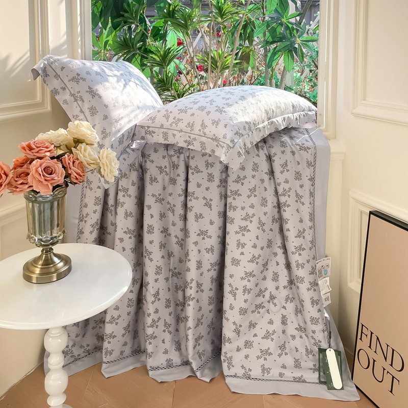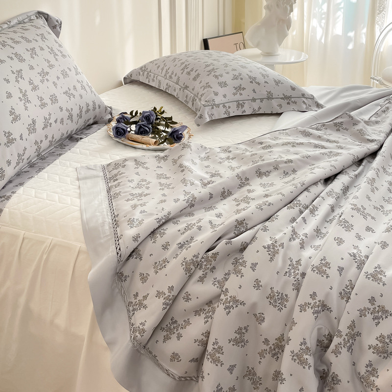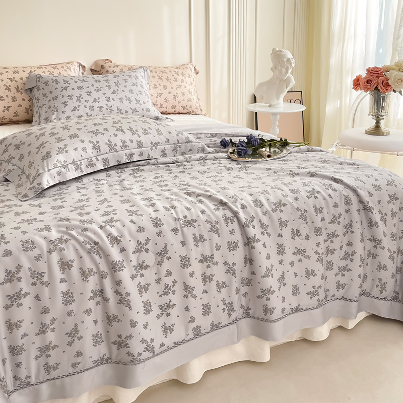 商品名称:匠心 2023新款莫代尔法式镂空夏被三件套 繁花-灰