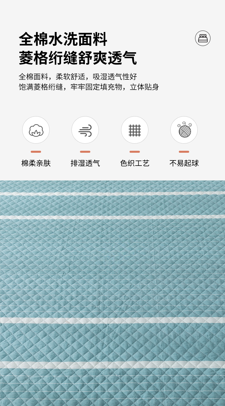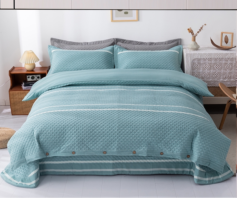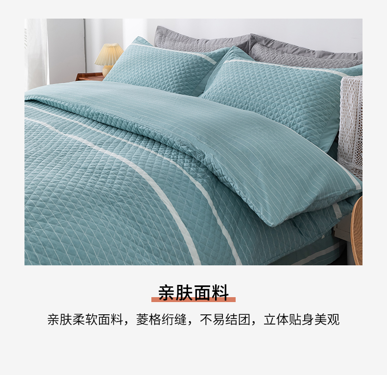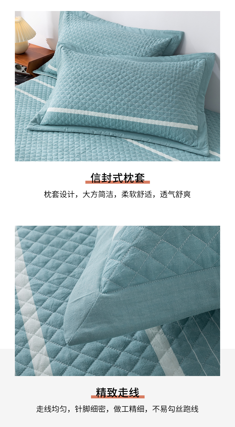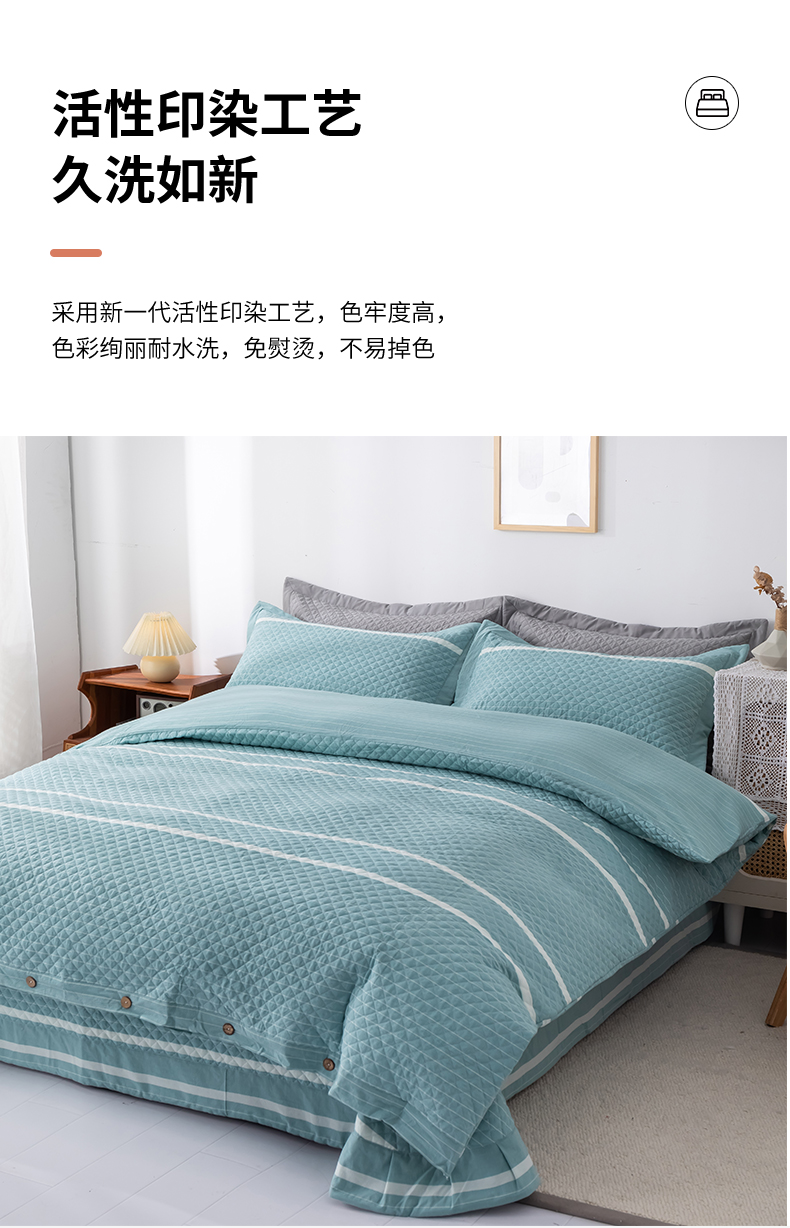 商品名称:优乐家纺 2025新款全棉四件套水洗纯棉夹棉绗缝加厚被罩 青春绿