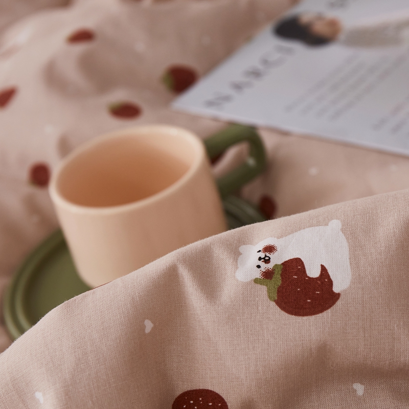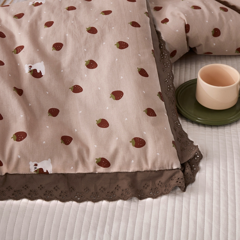 商品名称:上喜 热卖全棉水洗棉印花花边一体被 丝丝草莓