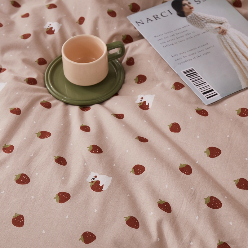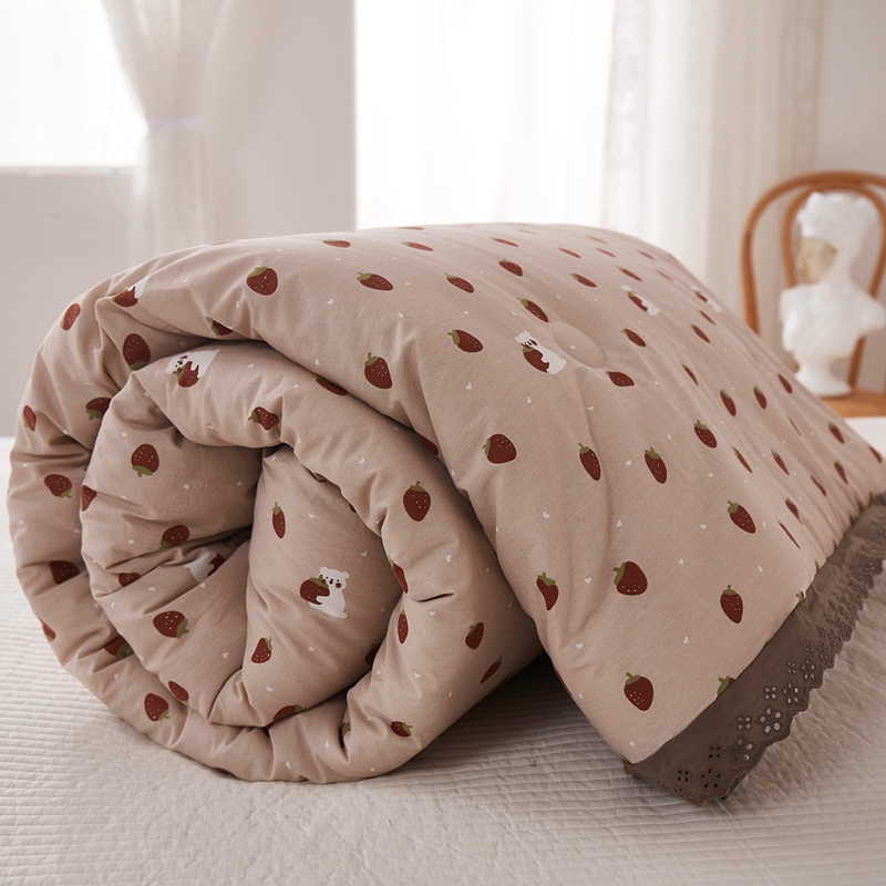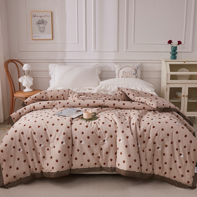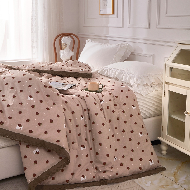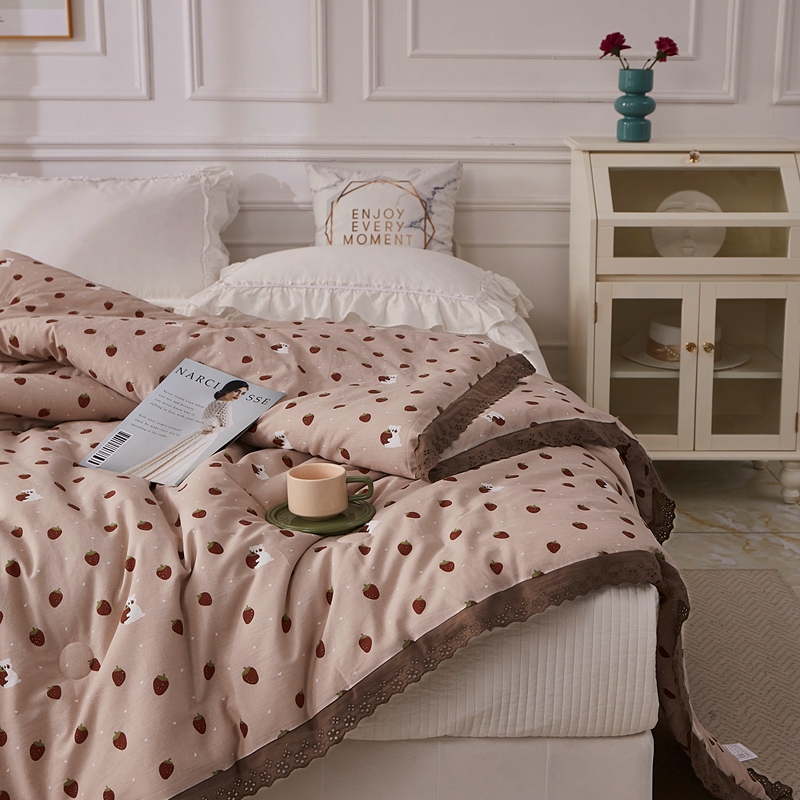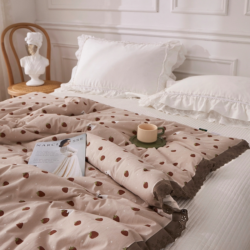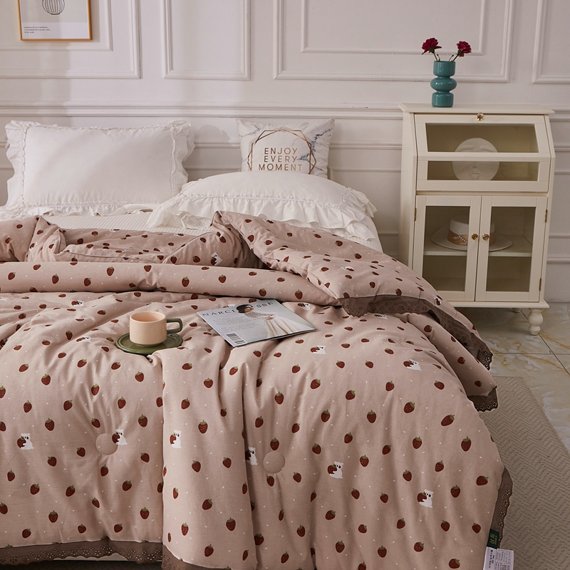 上喜 热卖全棉水洗棉印花花边一体被 丝丝草莓