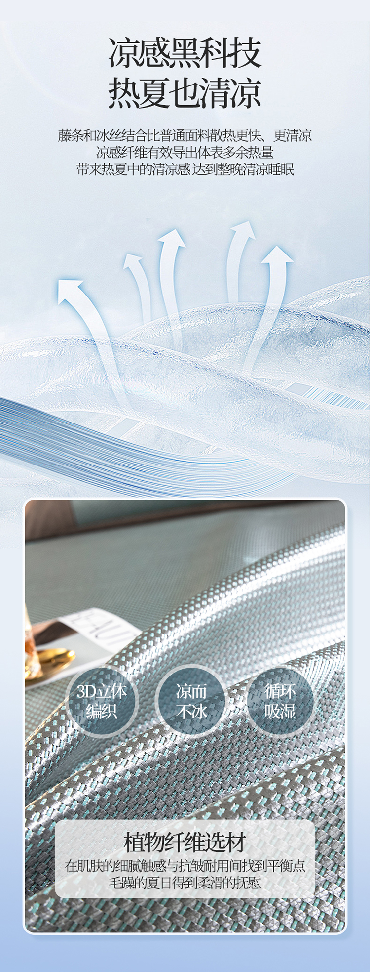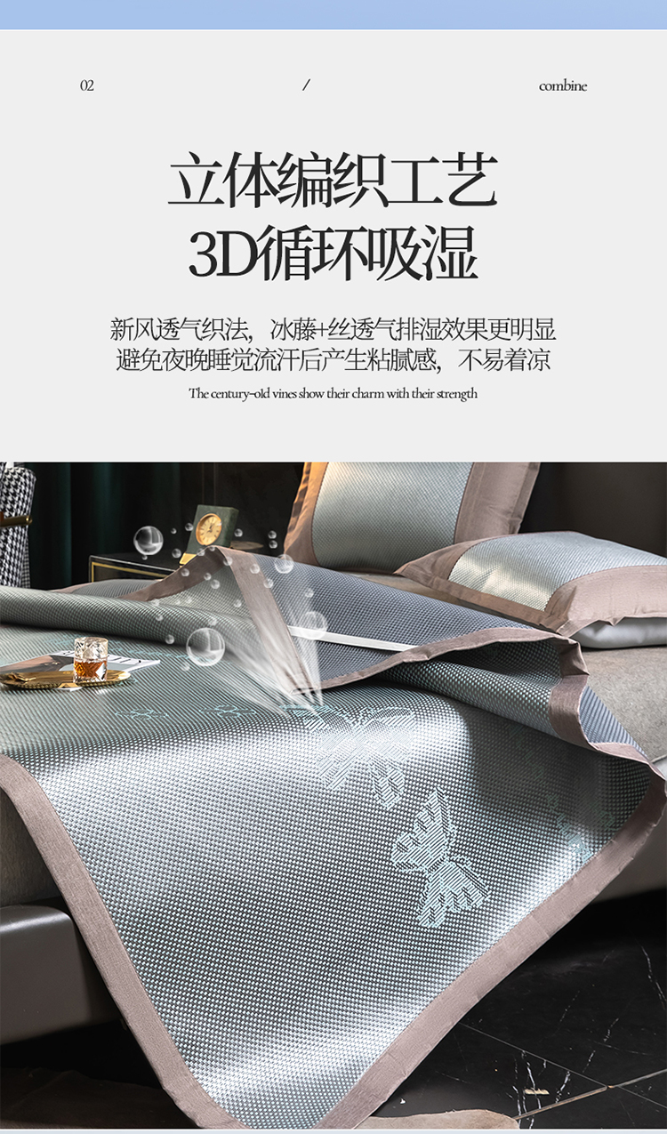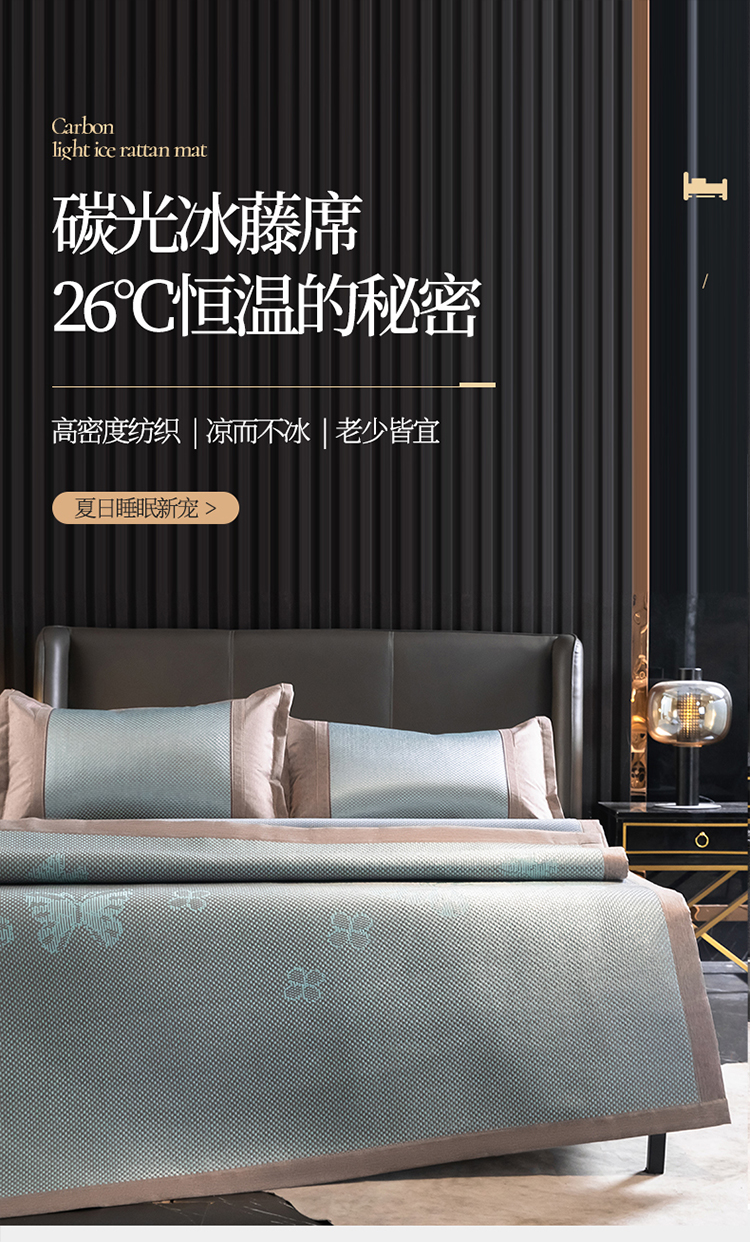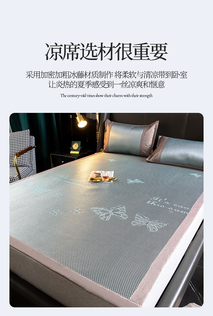 商品名称:宜派 2023新款碳光冰藤席三件套 蝴蝶灰绿