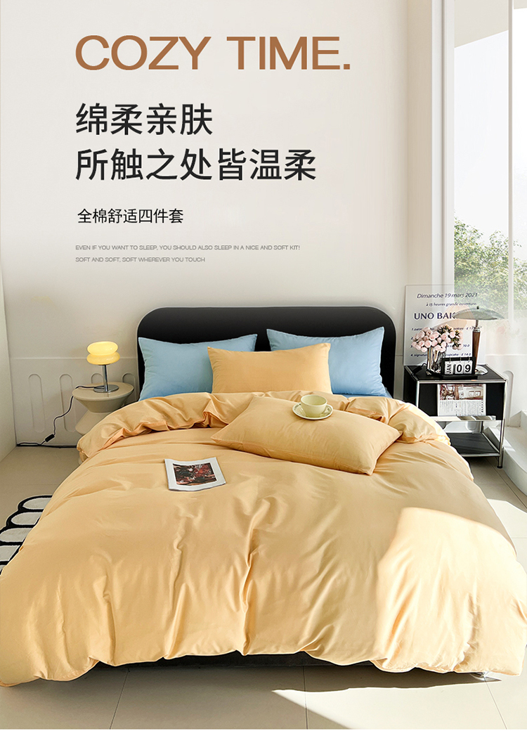 当前位置: 91家纺网 > 商品网购 > 床品套件 > 四件套 > 全棉普通四件套 > 恩和 2024新款全棉13374全棉ins纯色拼色四件套 海盐芝士