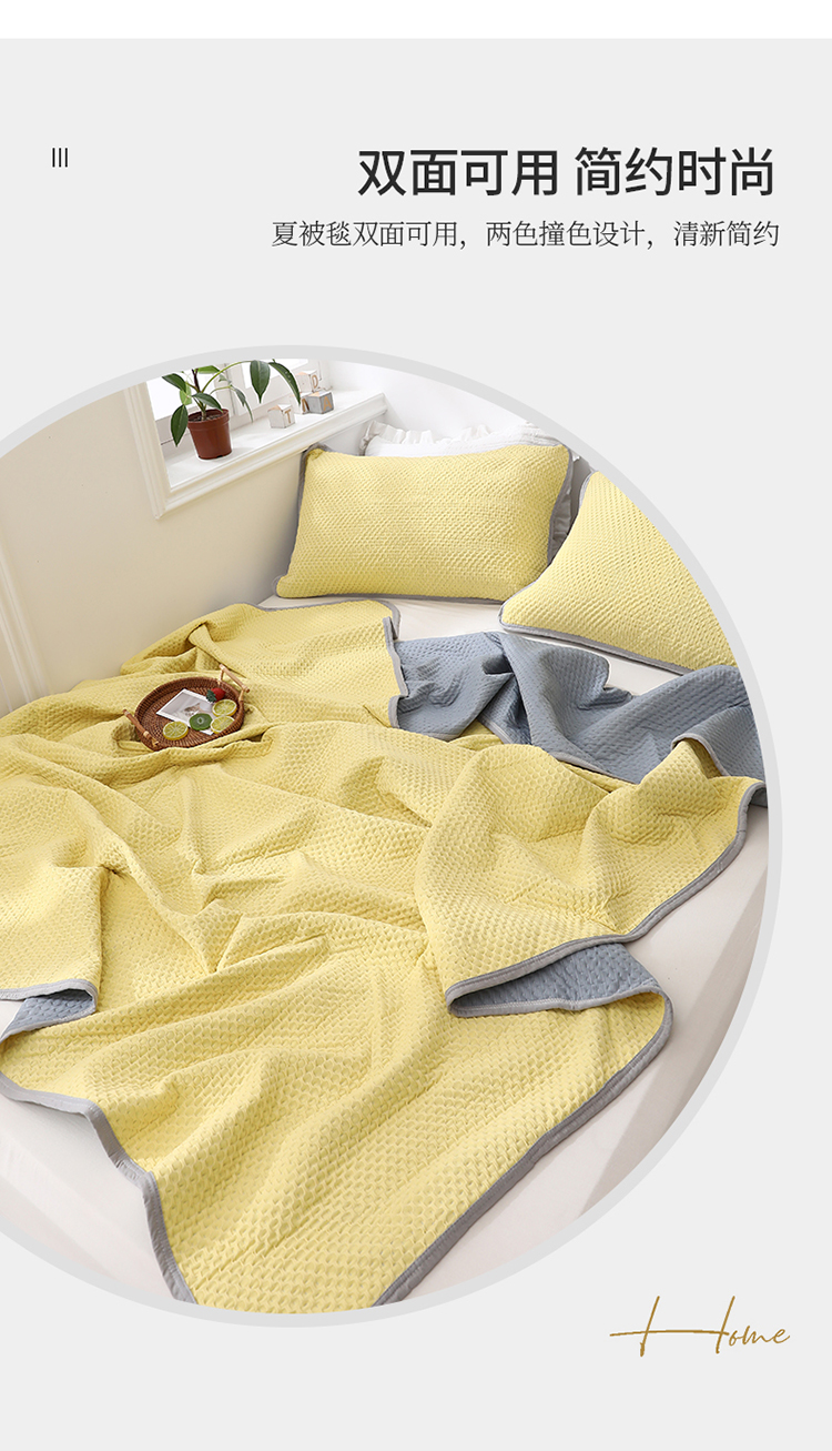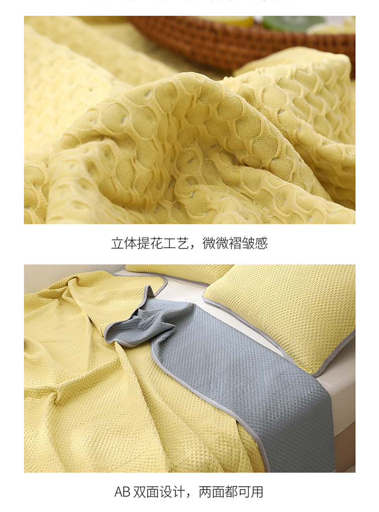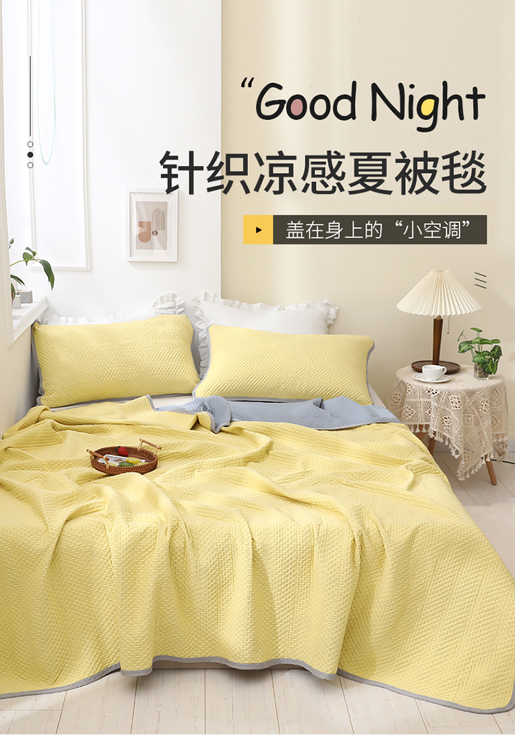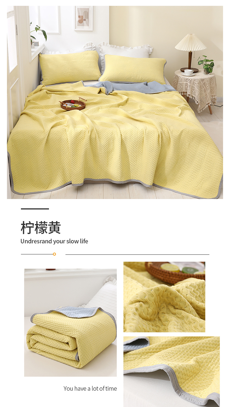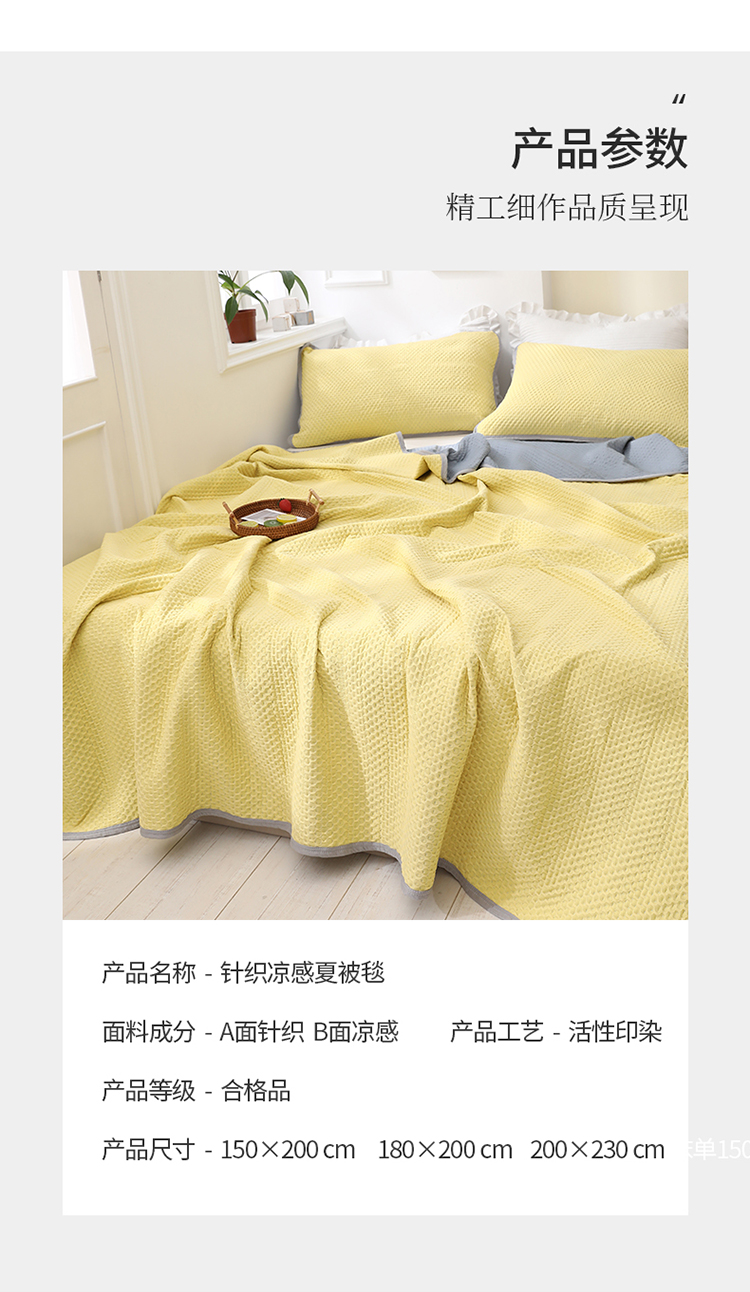 商品名称:琪琪阁2023新款华夫格针织提花亲肤舒适多功能凉感夏被 柠檬黄