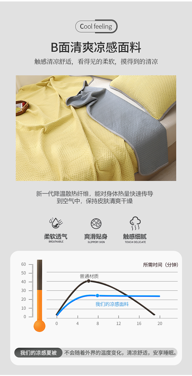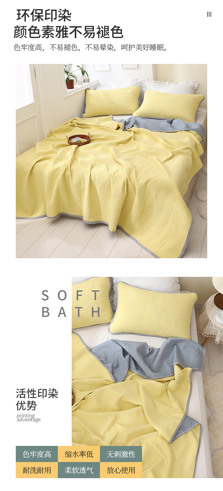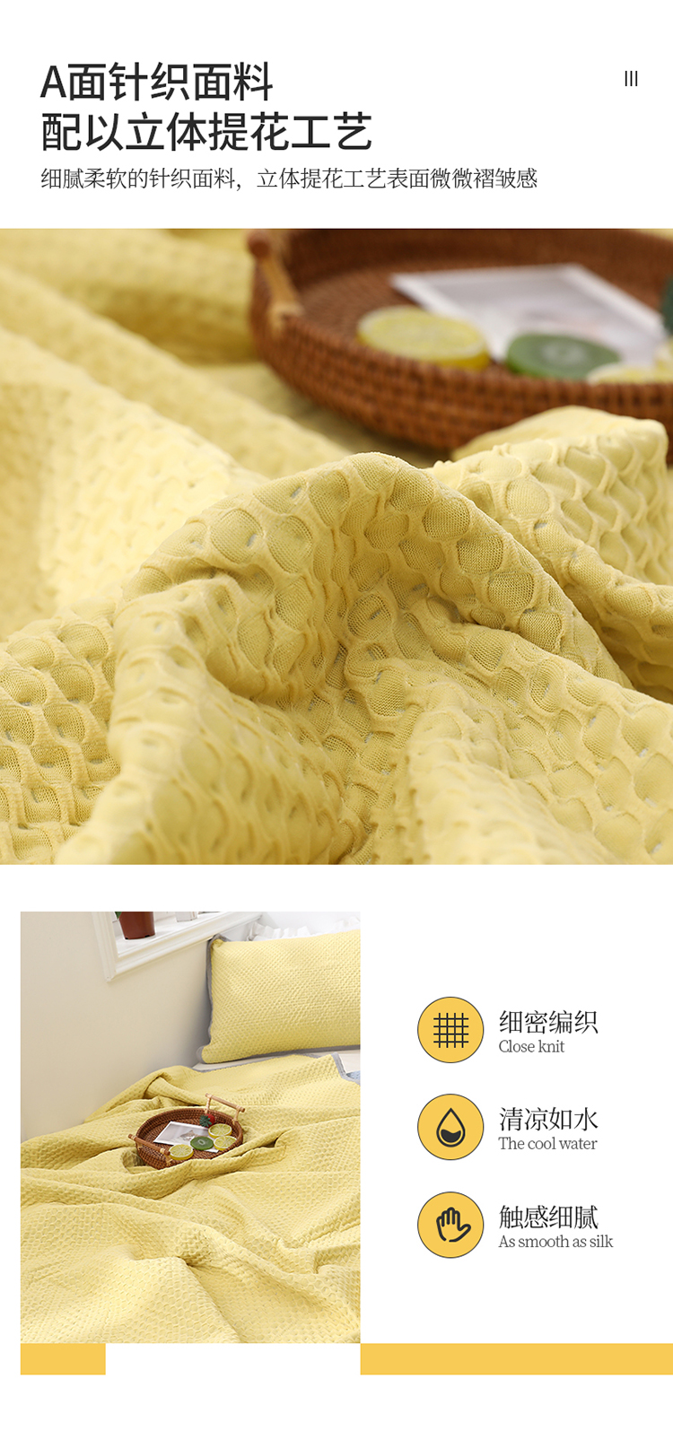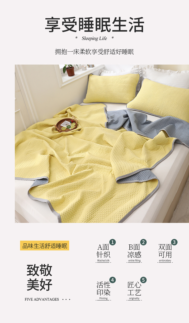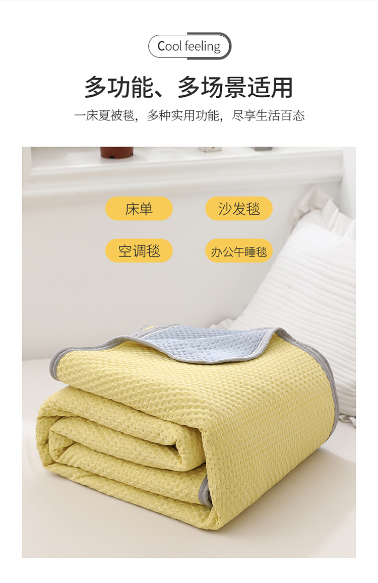 商品名称:琪琪阁2023新款华夫格针织提花亲肤舒适多功能凉感夏被 柠檬黄