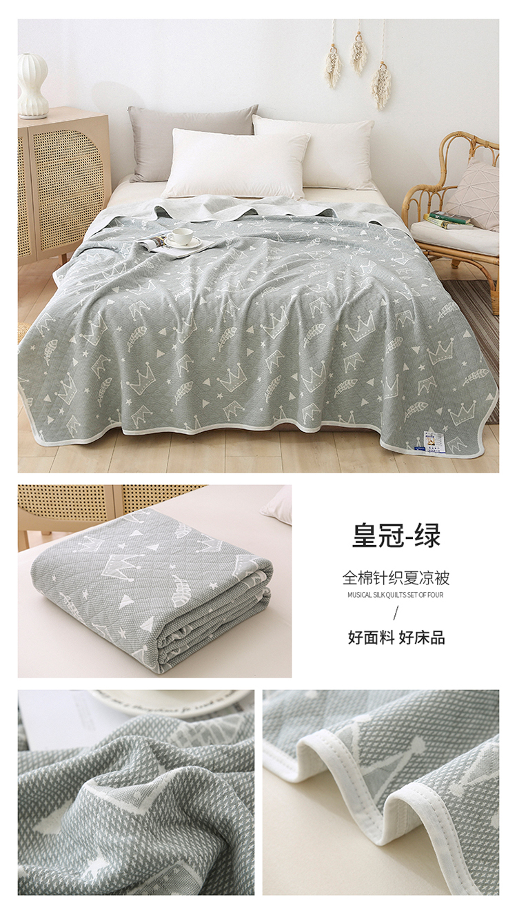 商品名称:琪琪阁2023新款提花针织棉夏被盖毯 皇冠-绿