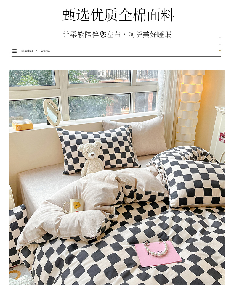 当前位置: 91家纺网 > 商品网购 > 床品套件 > 四件套 > 全棉普通四件套 > 麦伦 2023春夏新品ins小清新系列四件套 黑米格