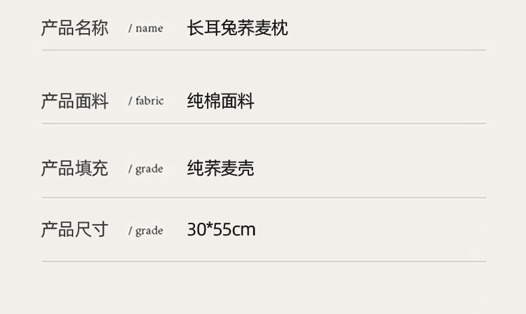商品名称:(总)枕之坊 2023新款长耳兔荞麦枕30*55CM
