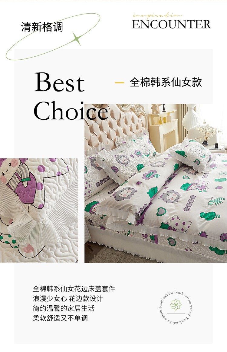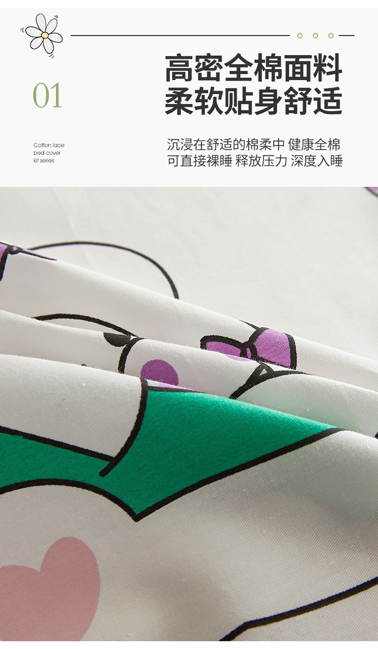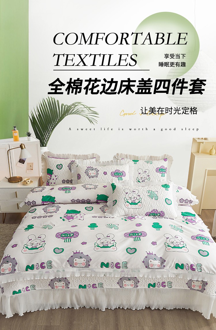 • 91家纺网 家纺一手货源 找家纺 宜凡 2023新款全棉印花床盖四件套 卡哇伊