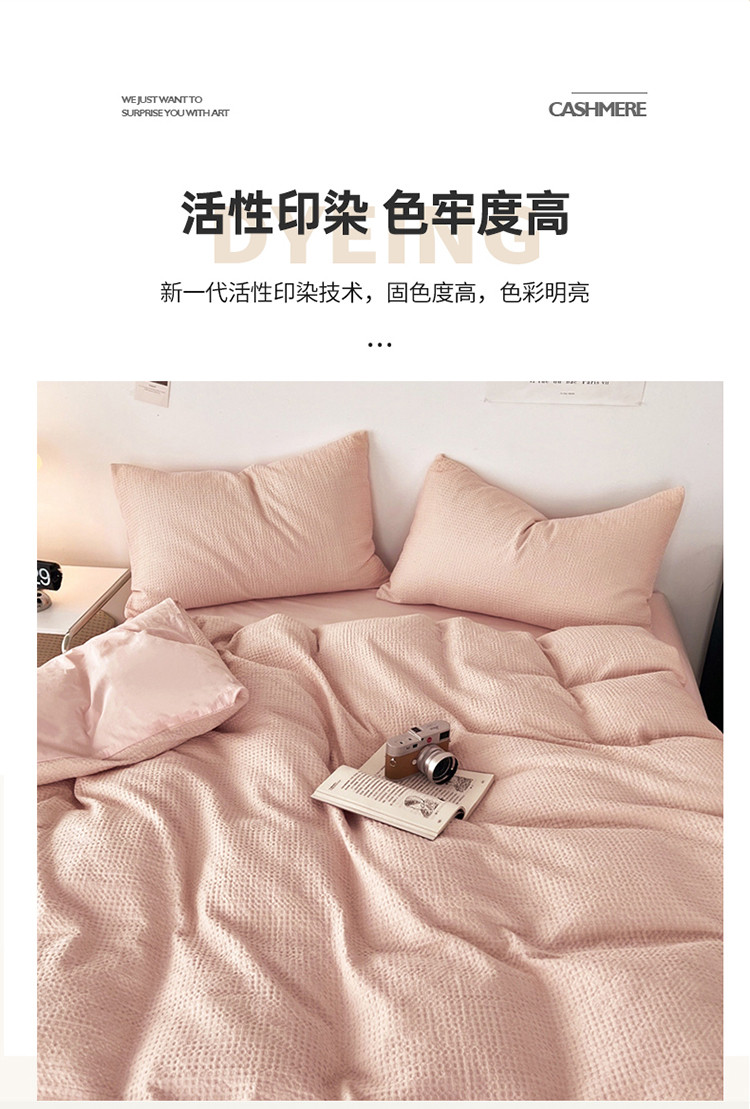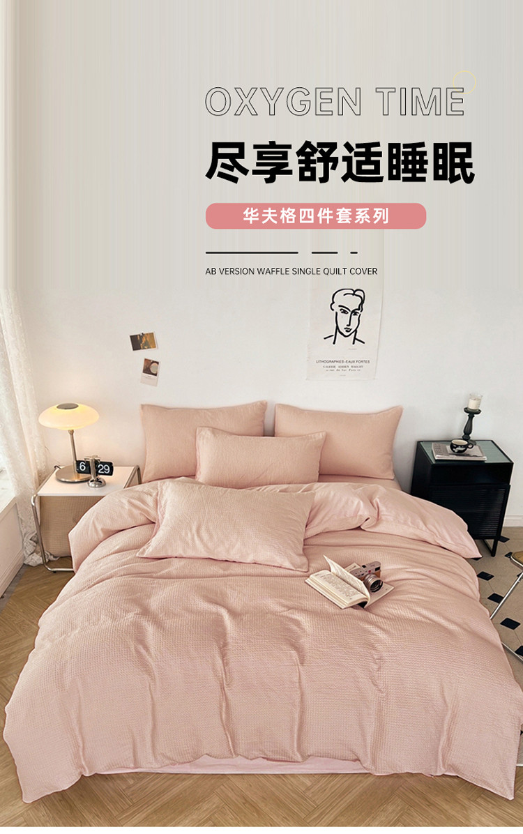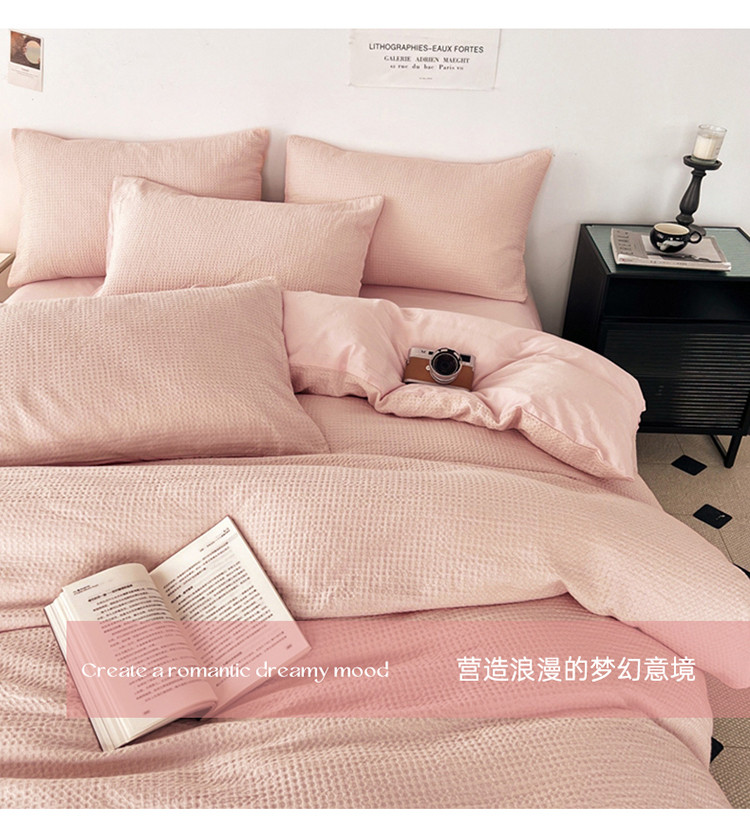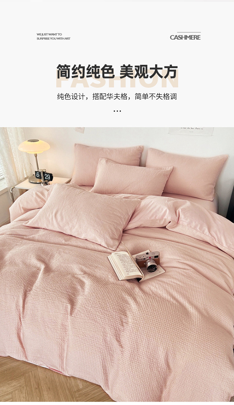 雅萱 2023新款华夫格四件套-普通款 柔粉