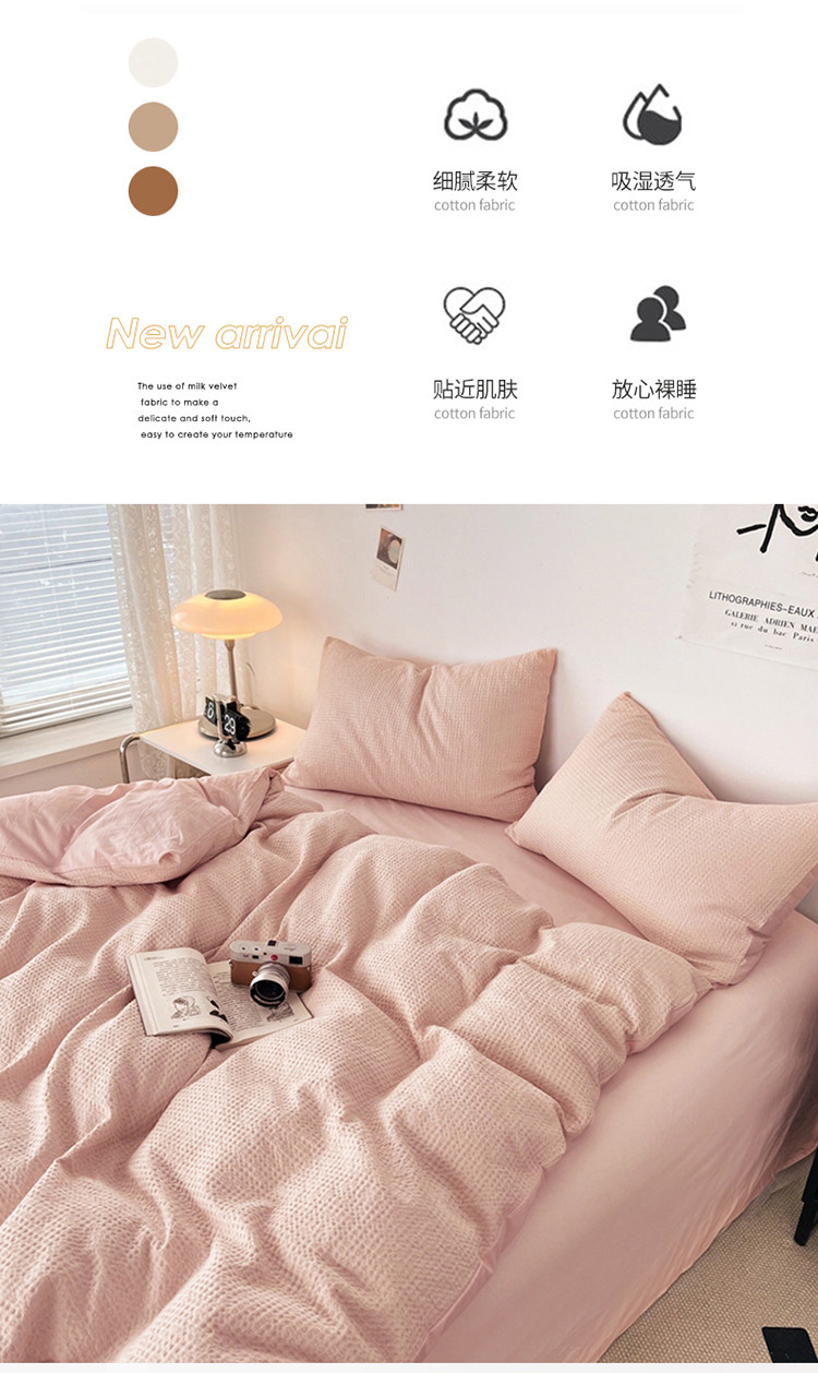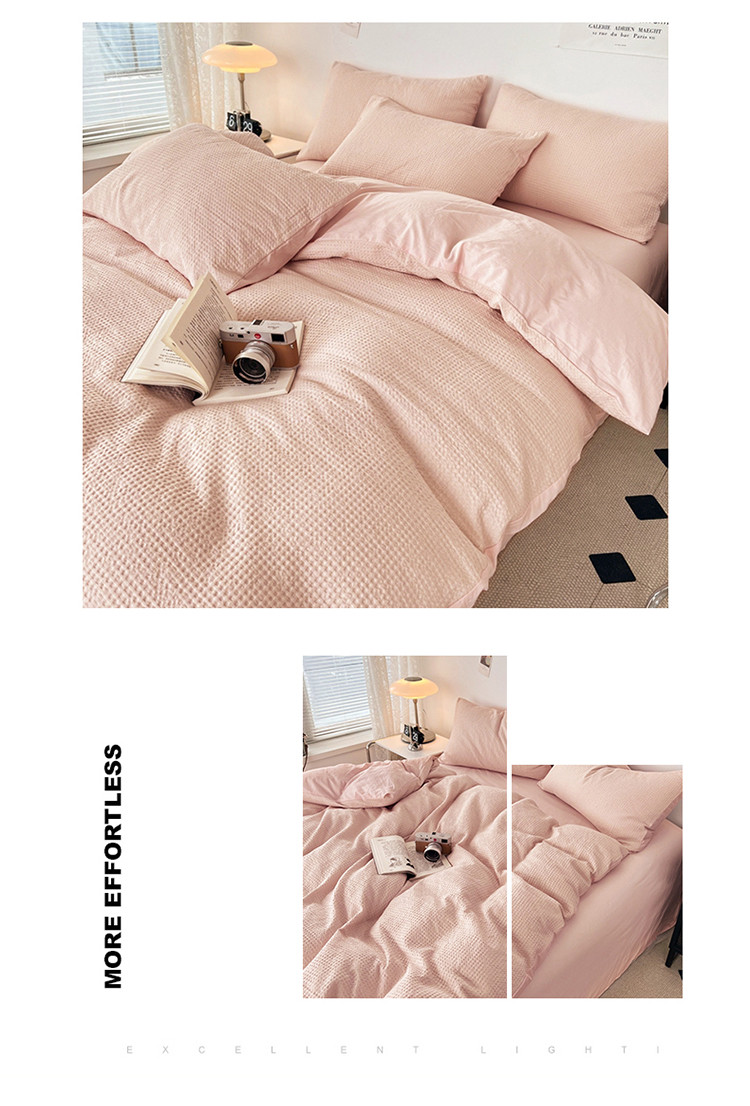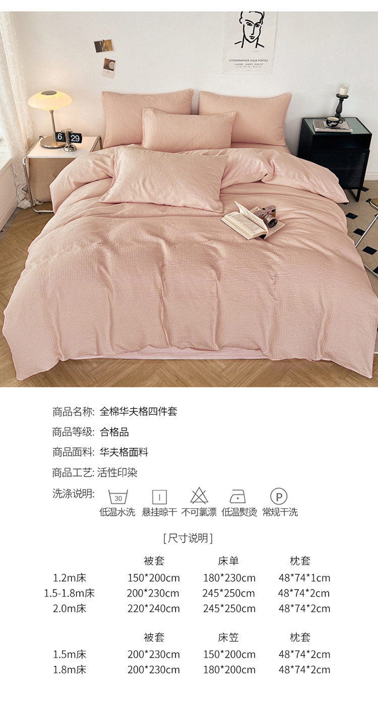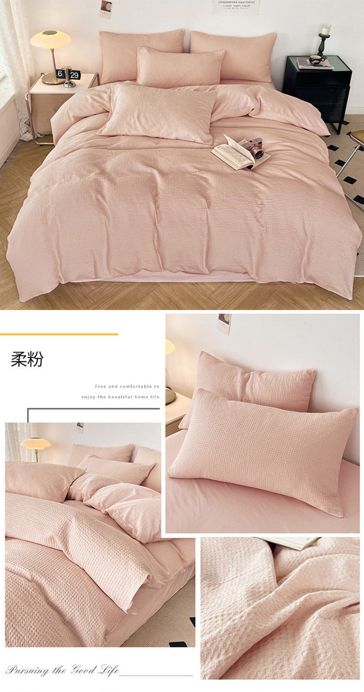 雅萱 2023新款华夫格四件套-普通款 柔粉