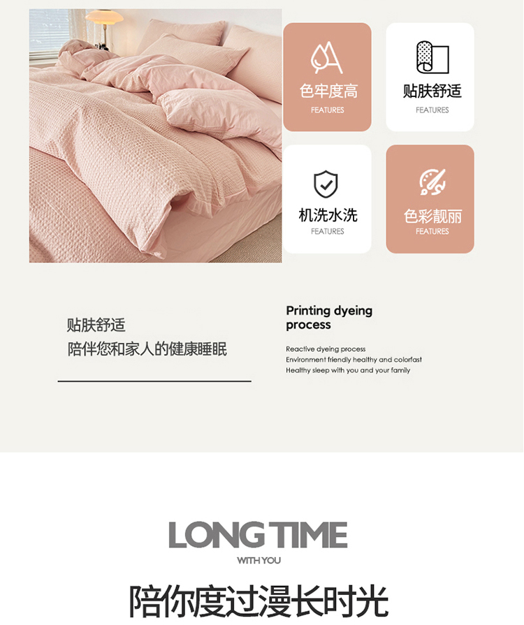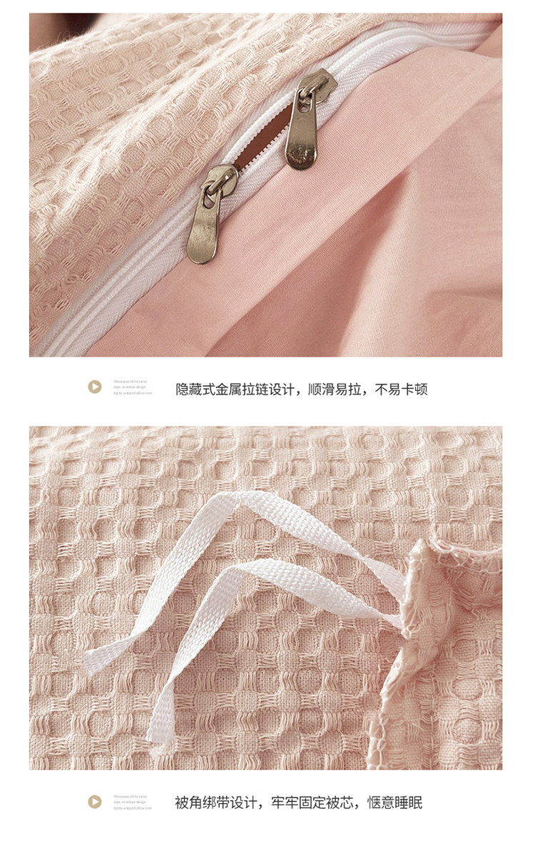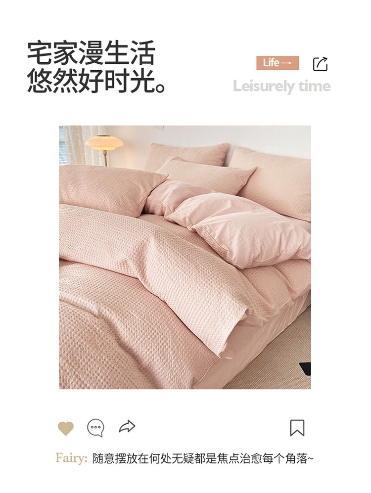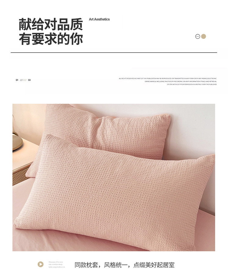 商品名称:雅萱 2023新款华夫格四件套-普通款 柔粉