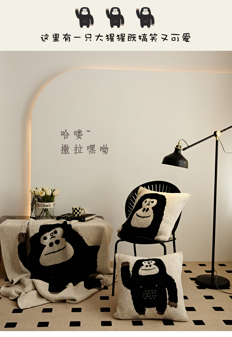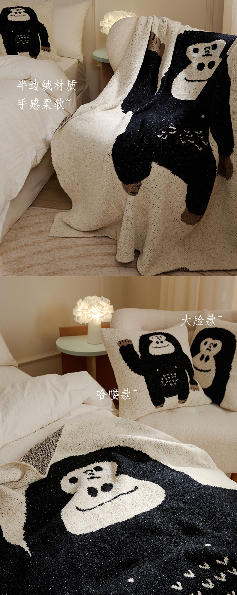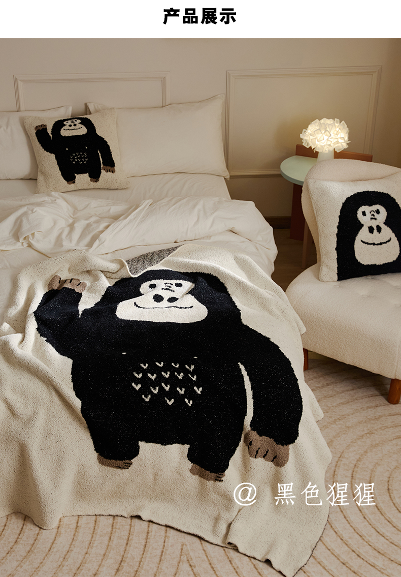 商品名称:暖绵绵 2025新款半边绒针织工艺毯子黑猩猩 黑色