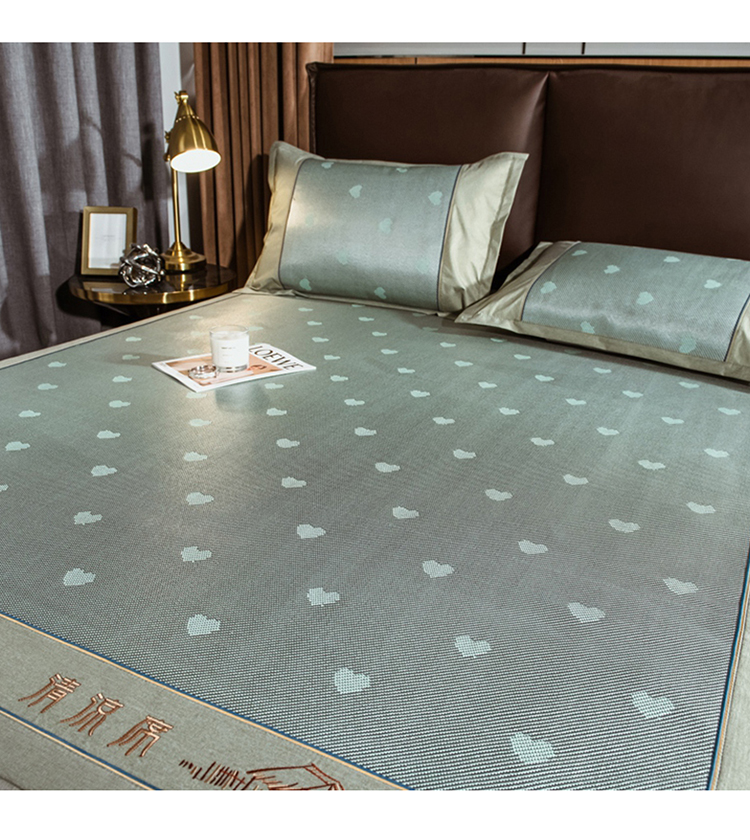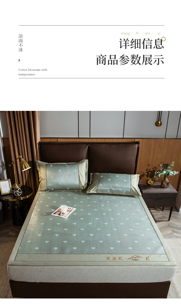商品名称:全季家居 2023新款加厚加密宽边刺绣提花冰藤凉席-床席款 爱心-水绿