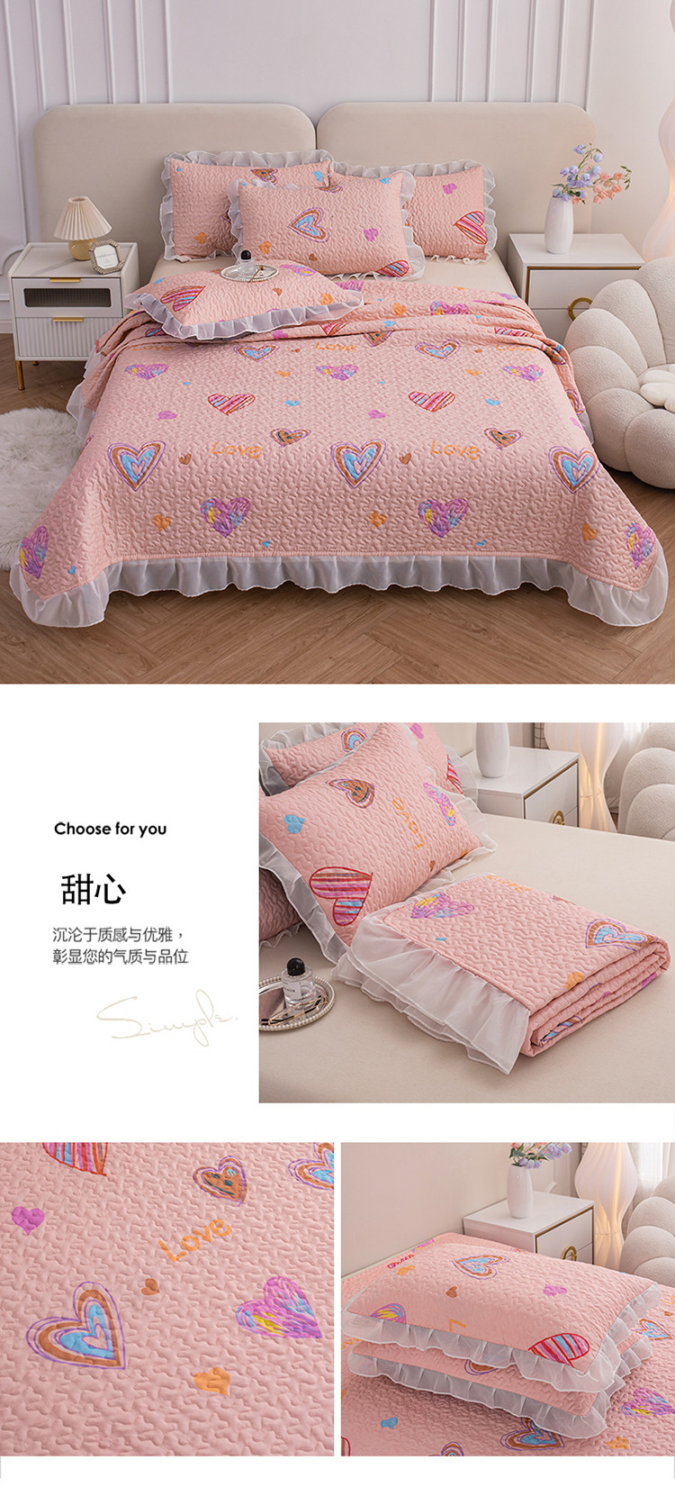 梓依家纺 2025新款牛奶绒花边单床盖三件套四件套 爱心点点,爱心点点