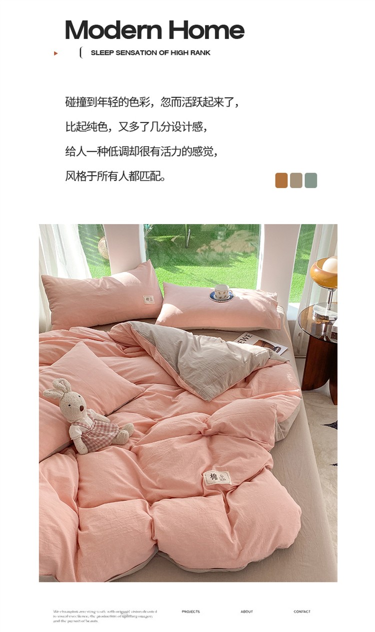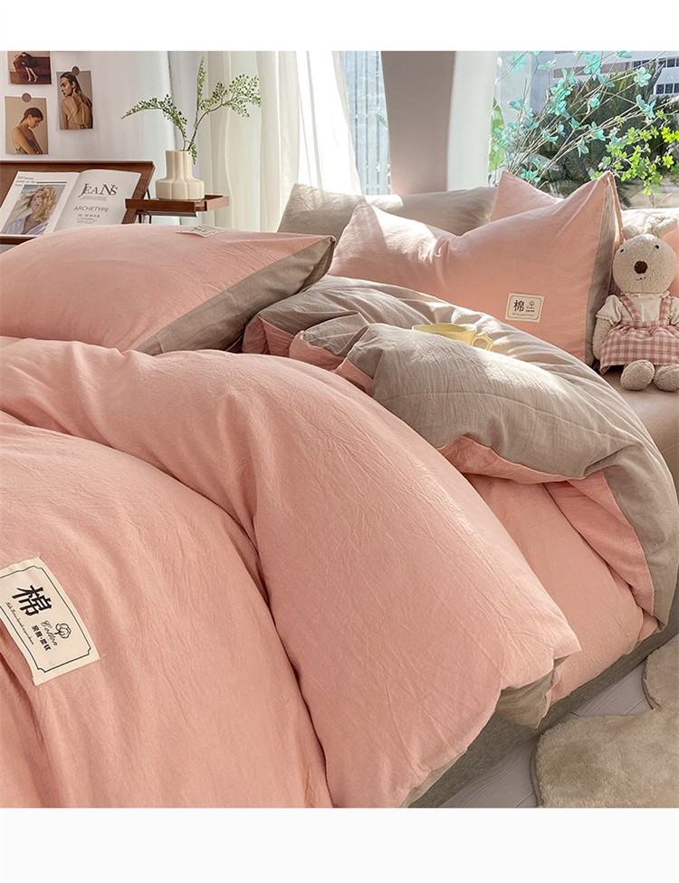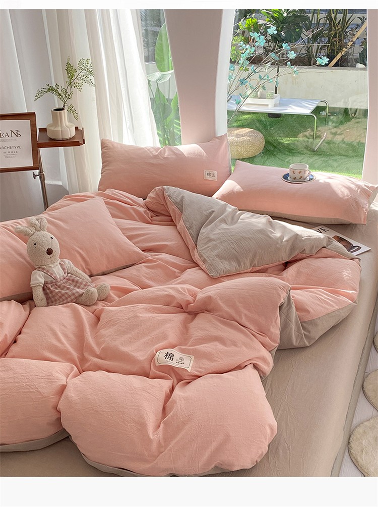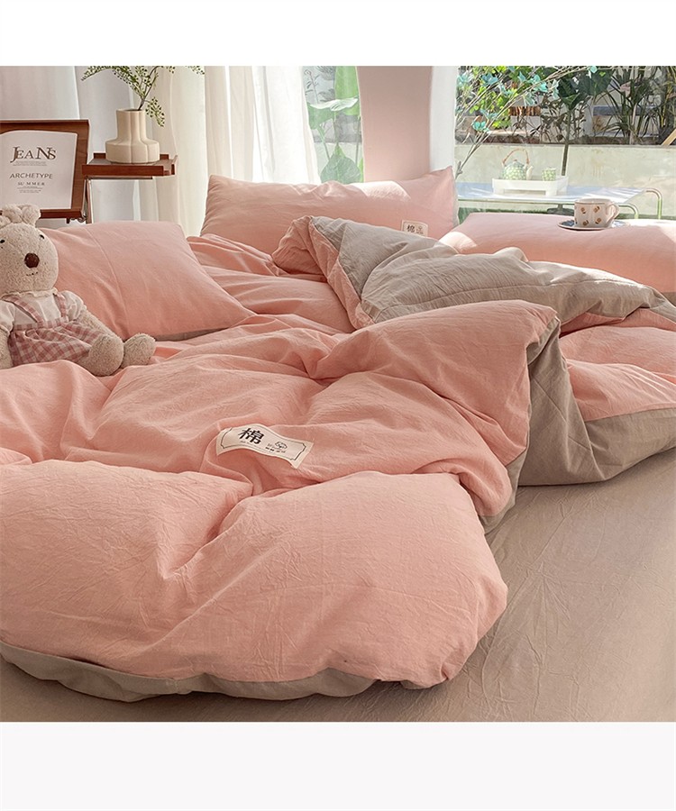 商品名称:云家2023新款全棉纯棉水洗棉色织被套单件被罩 豆沙-米灰双拼
