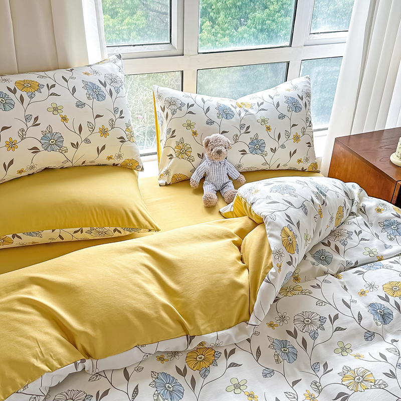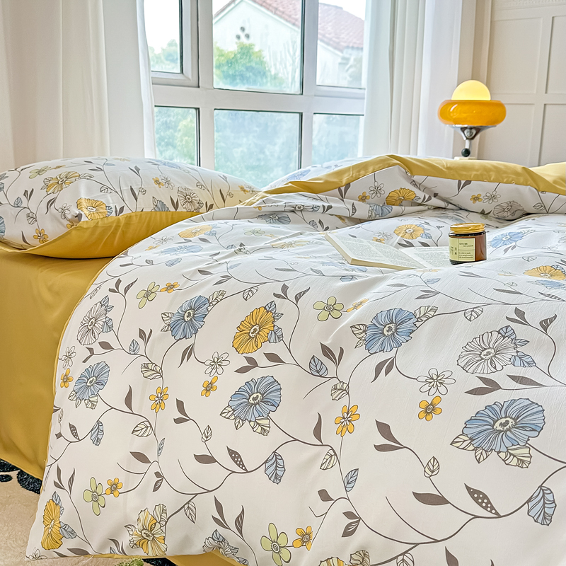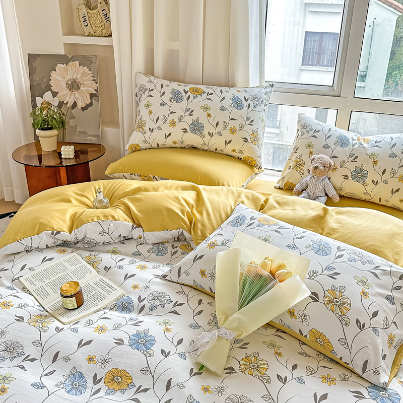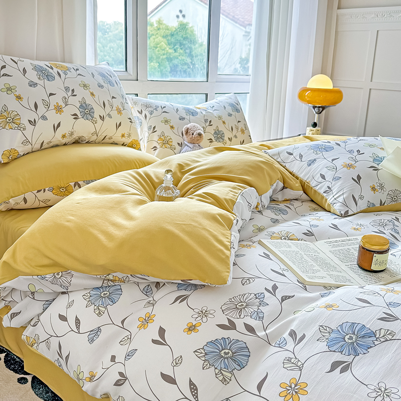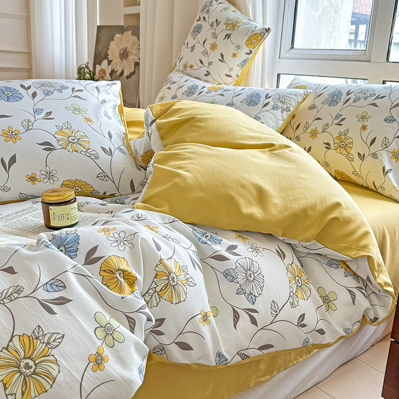 美莱 2023直播爆款水洗棉麻四件套小清新套件可谈价 夕颜,夕颜