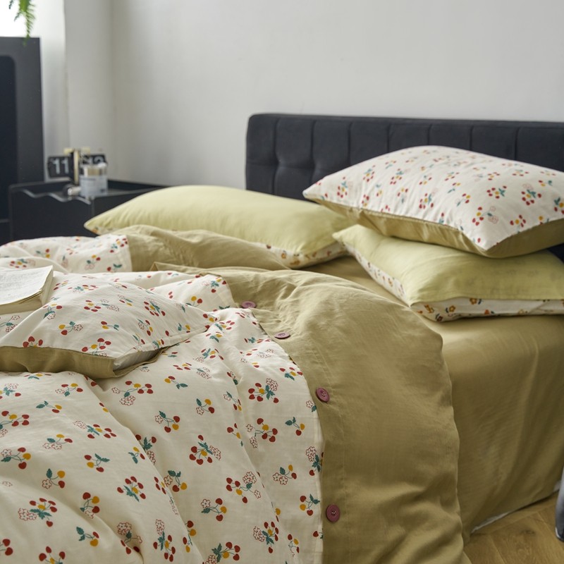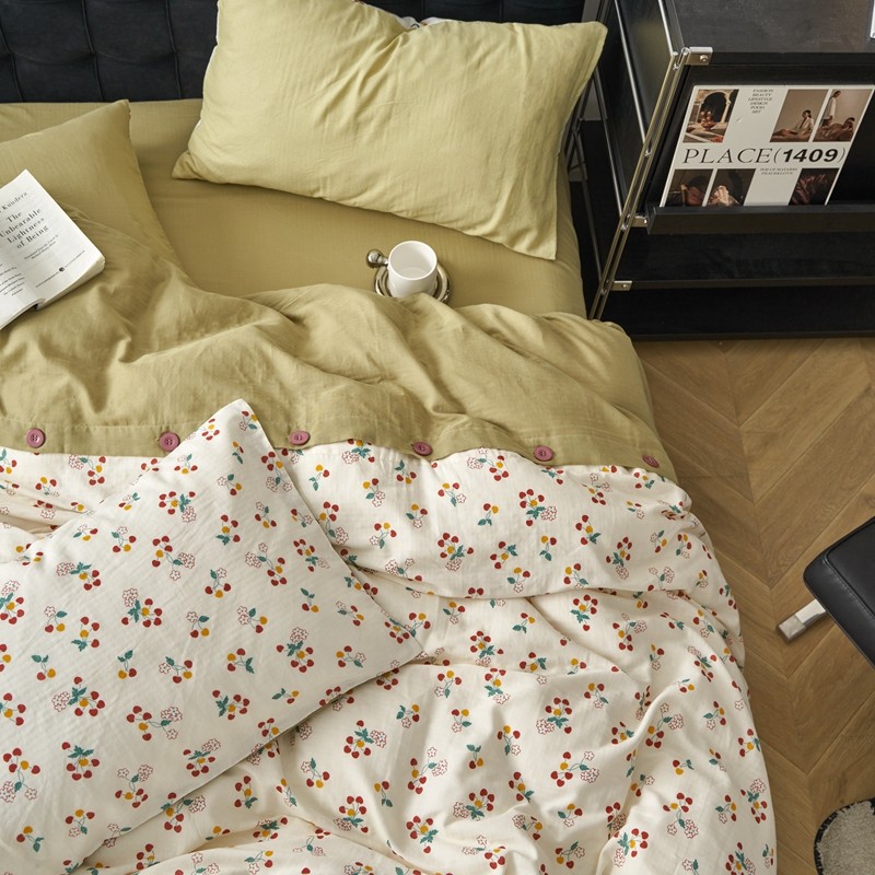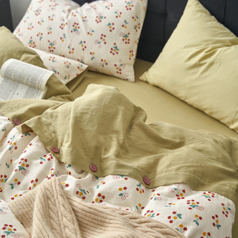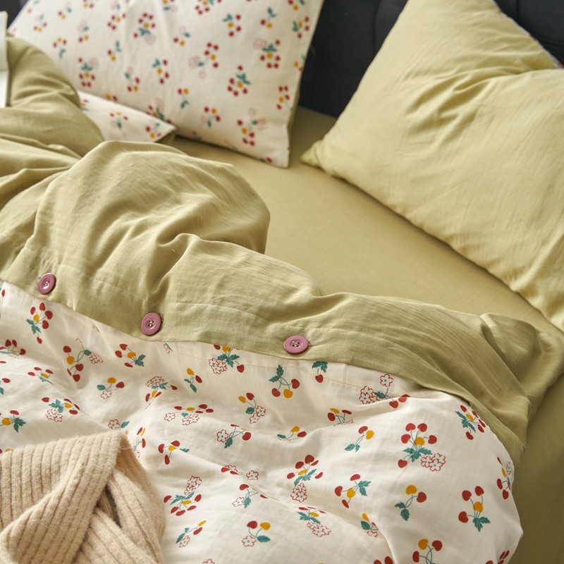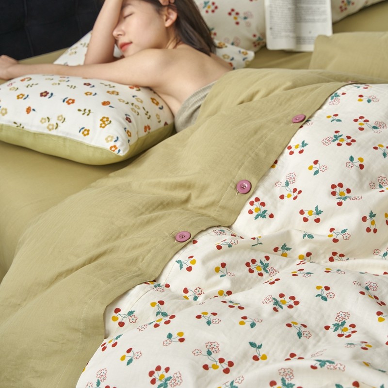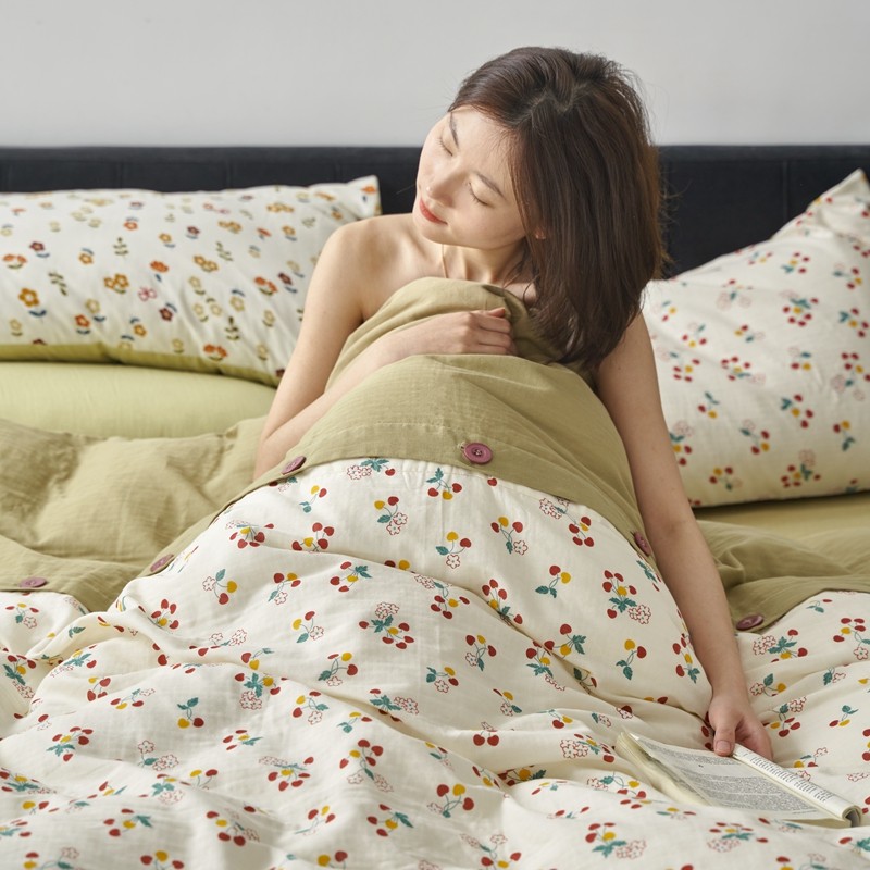 时年 2023新款全棉母婴级有氧双层纱纽扣工艺款四件套-场景一 夕颜花
