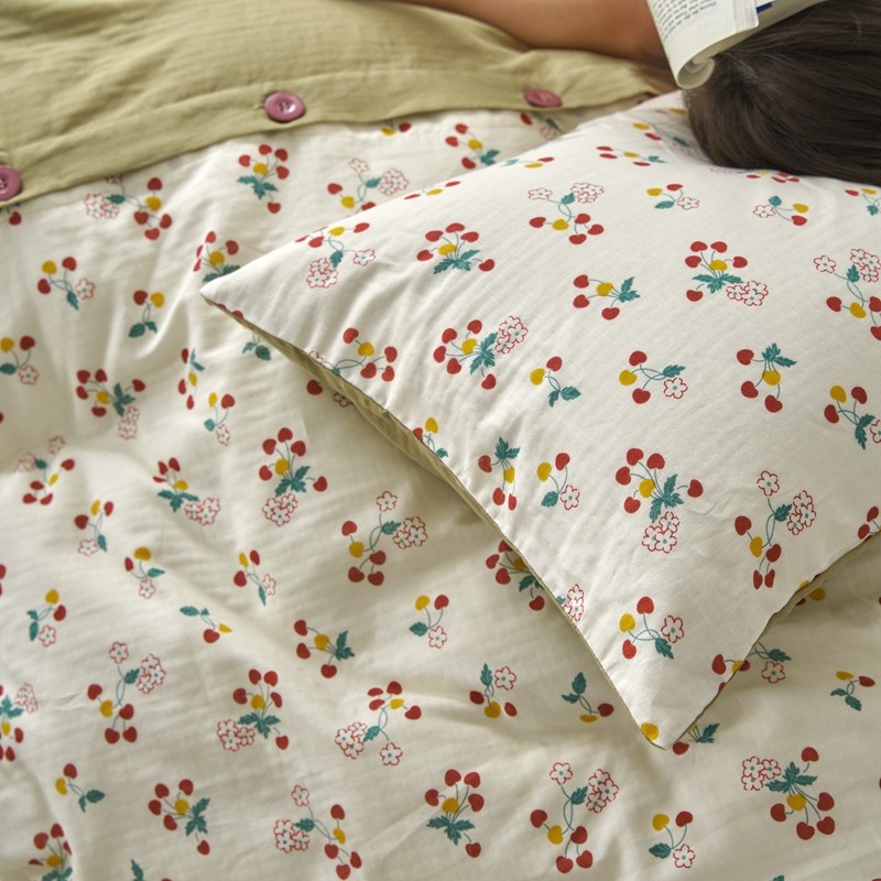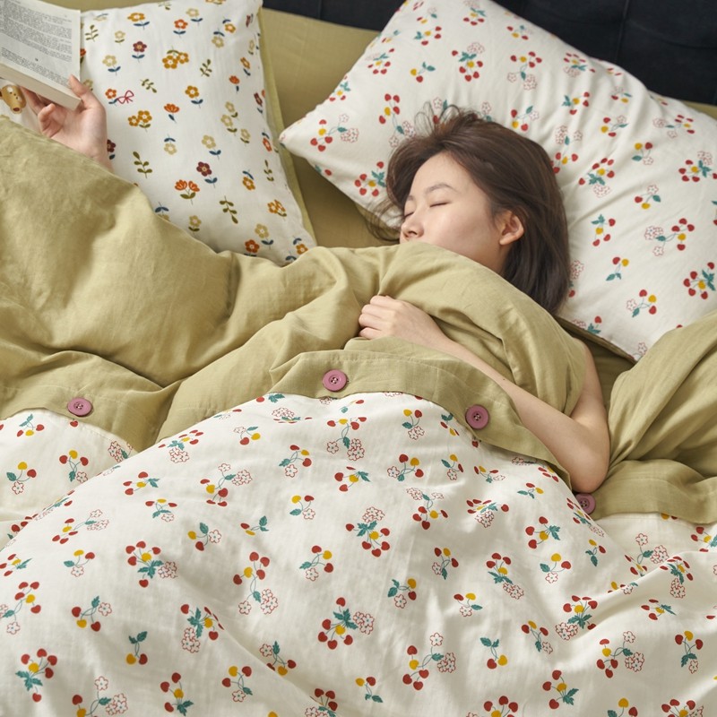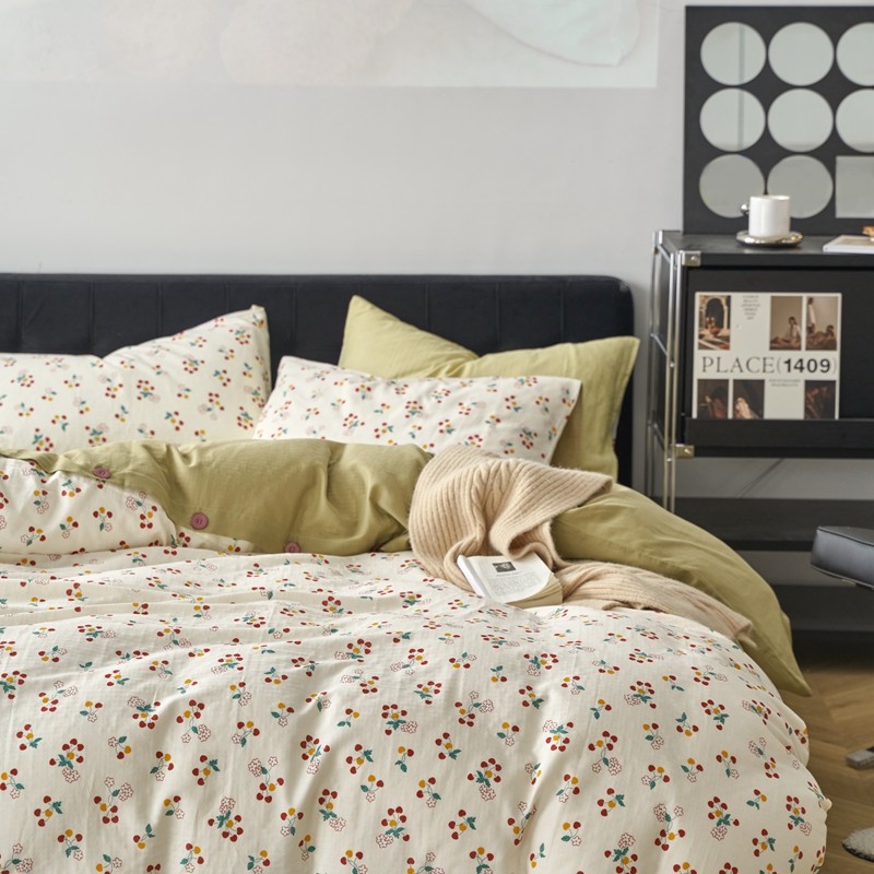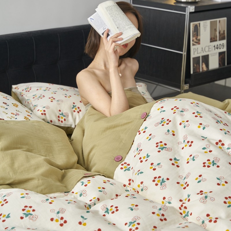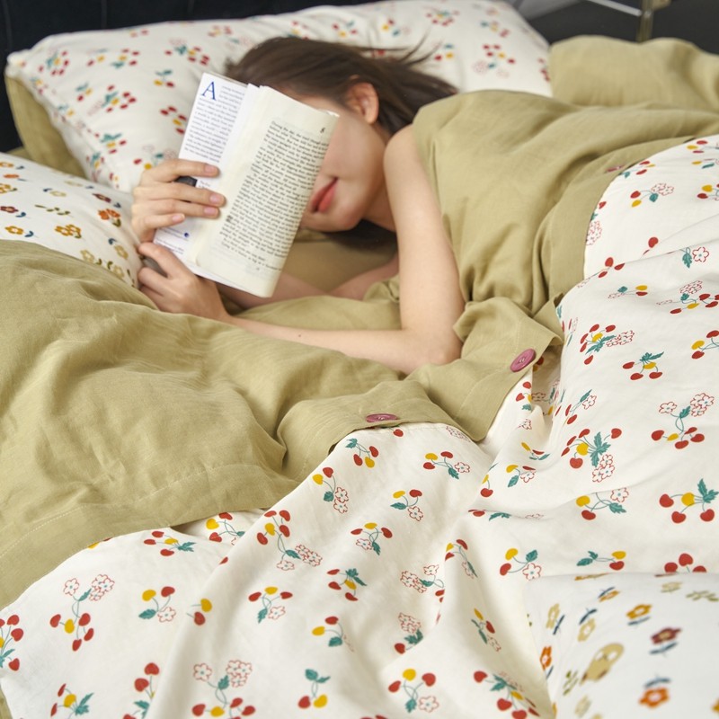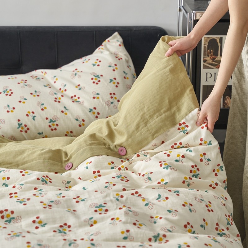 时年 2023新款全棉母婴级有氧双层纱纽扣工艺款四件套-场景一 夕颜花