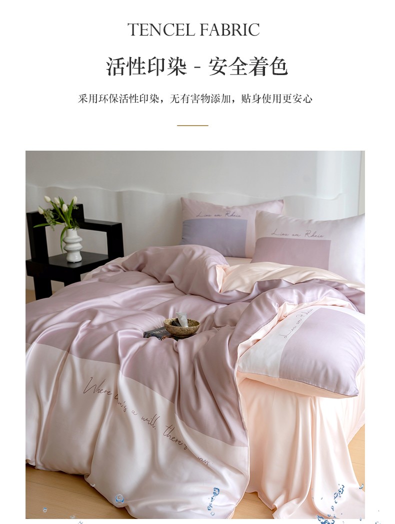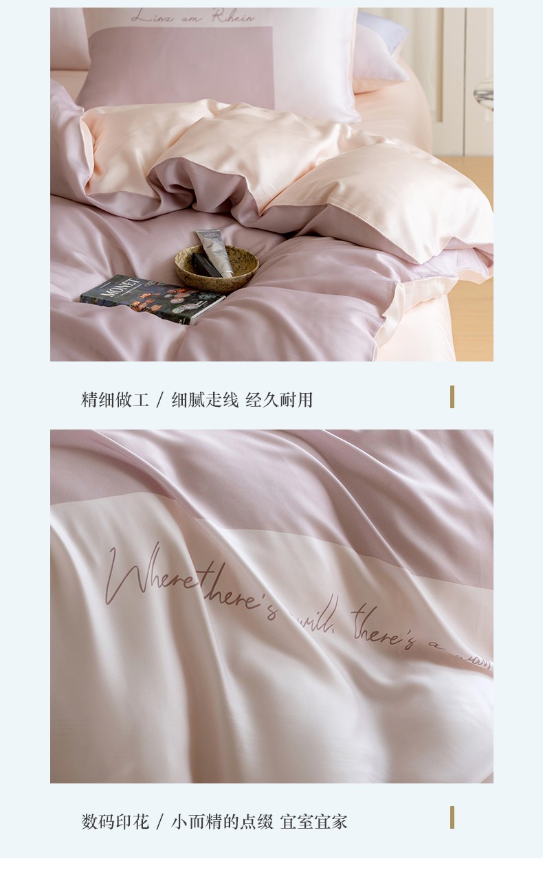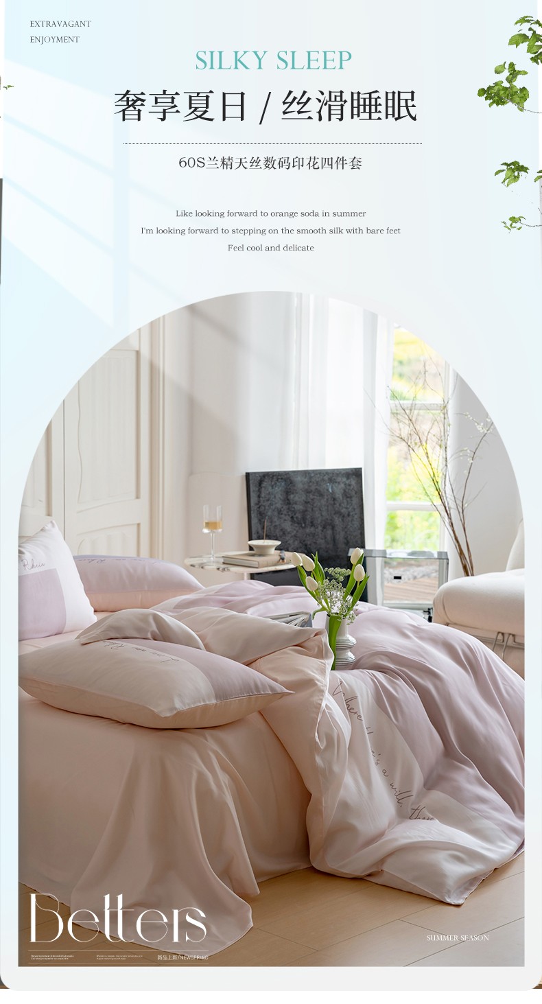 (总)沐晴 2023新款数码印花60S兰精天丝纯色简约轻奢四件套