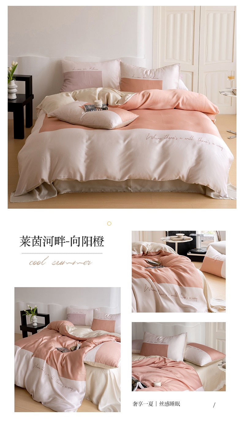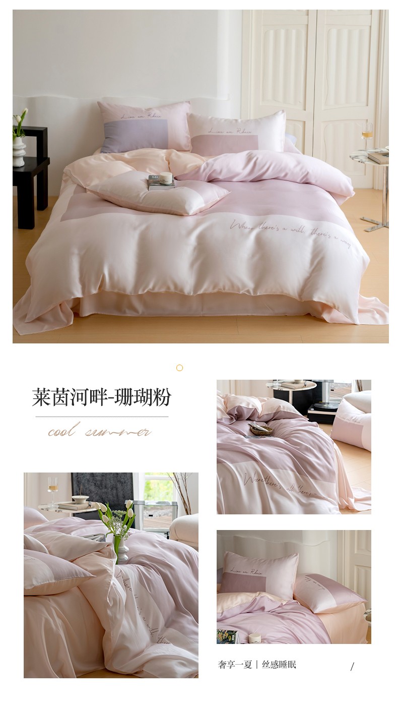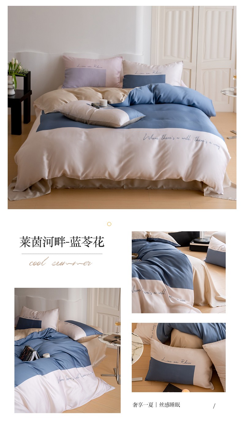(总)沐晴 2023新款数码印花60S兰精天丝纯色简约轻奢四件套