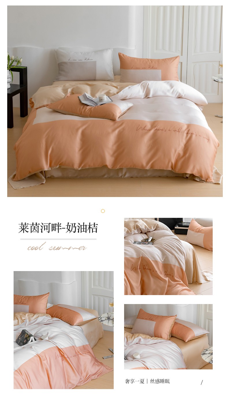 (总)沐晴 2023新款数码印花60S兰精天丝纯色简约轻奢四件套,茶花白,霍瓦纳,蓝苓花,抹茶绿,奶油桔,珊瑚粉,松石灰,太妃糖,向阳橙,薰衣草