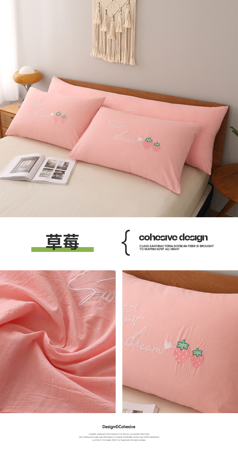商品名称:锦绣万家2023新款色织水洗棉绣花双人枕套 水洗棉绣花草莓