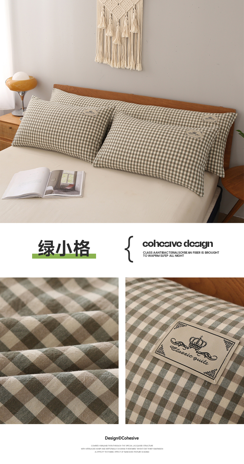商品名称:锦绣万家2023新款色织水洗棉格子双人枕套 绿小格