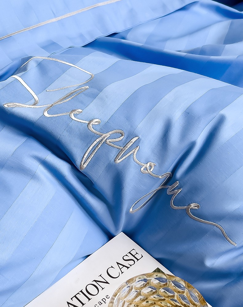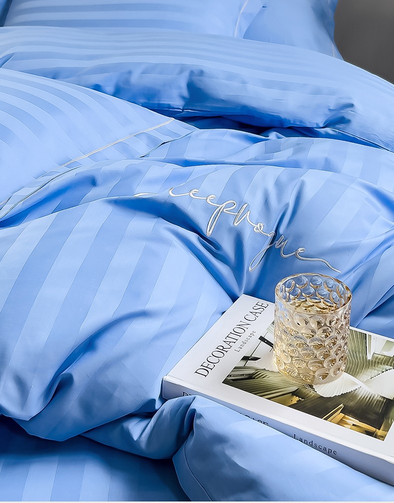 慕尚 2025新款60支长绒棉提花条纹系列单品被套 条纹天兰