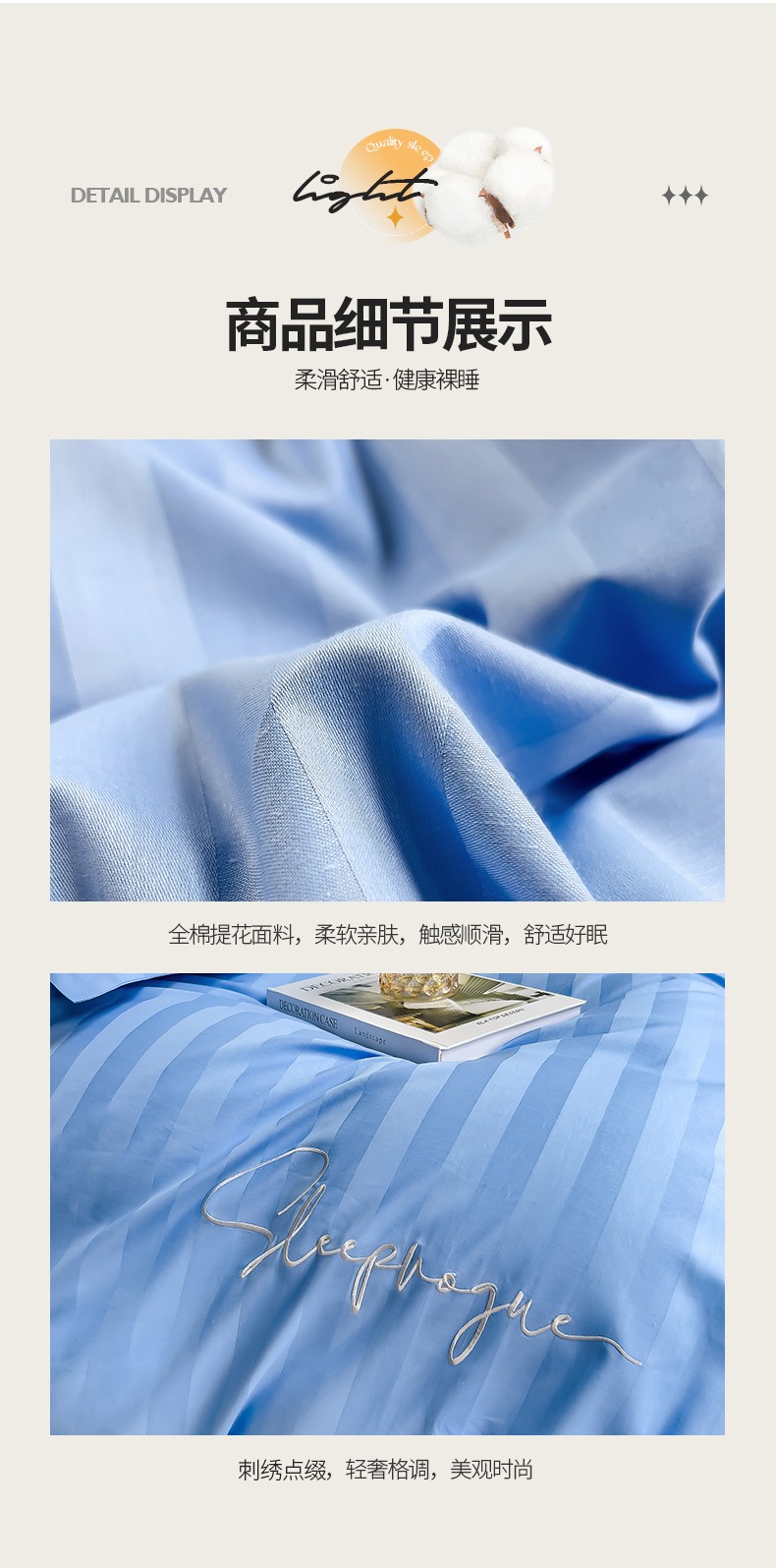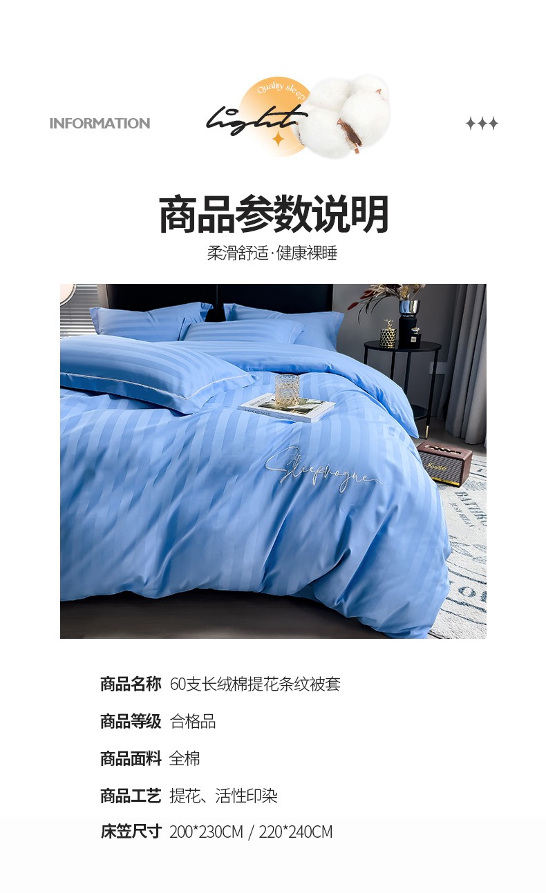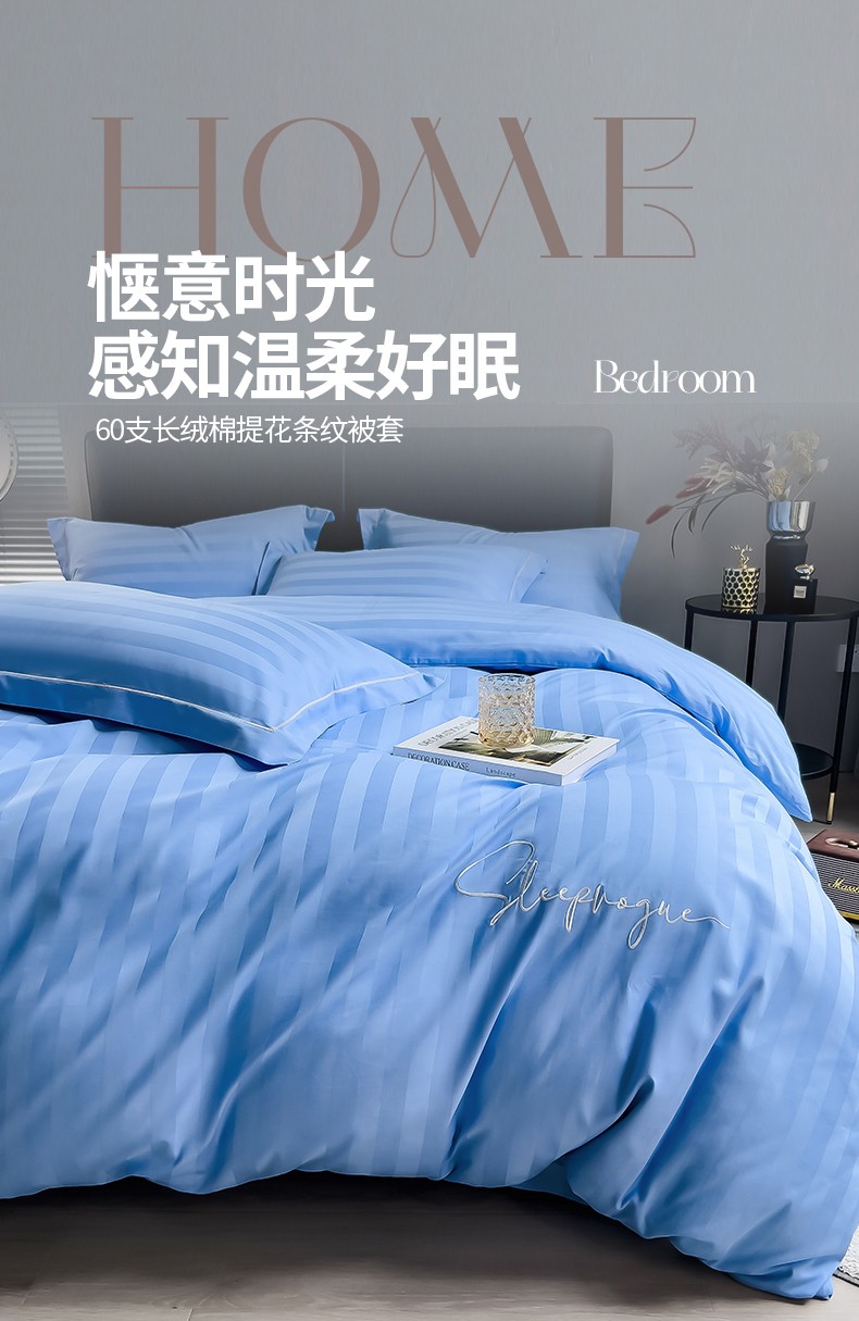 商品名称:慕尚 2025新款60支长绒棉提花条纹系列单品被套 条纹天兰